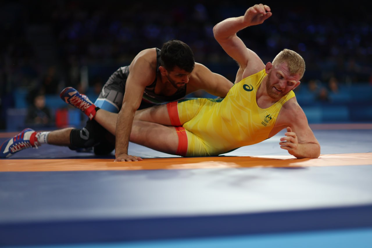 تصاویری از دیدار حسن یزدانی 86 کیلوگرم کشتی آزاد مقابل حریفانی از استرالیا و یونان