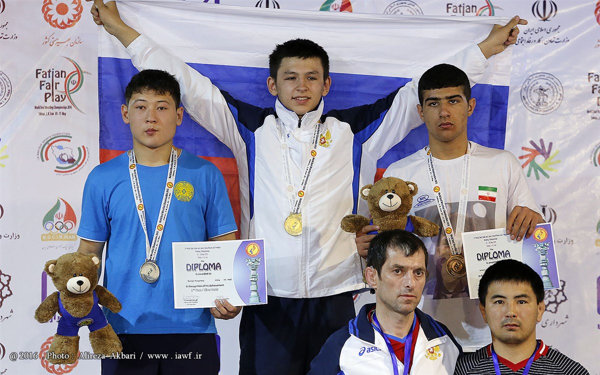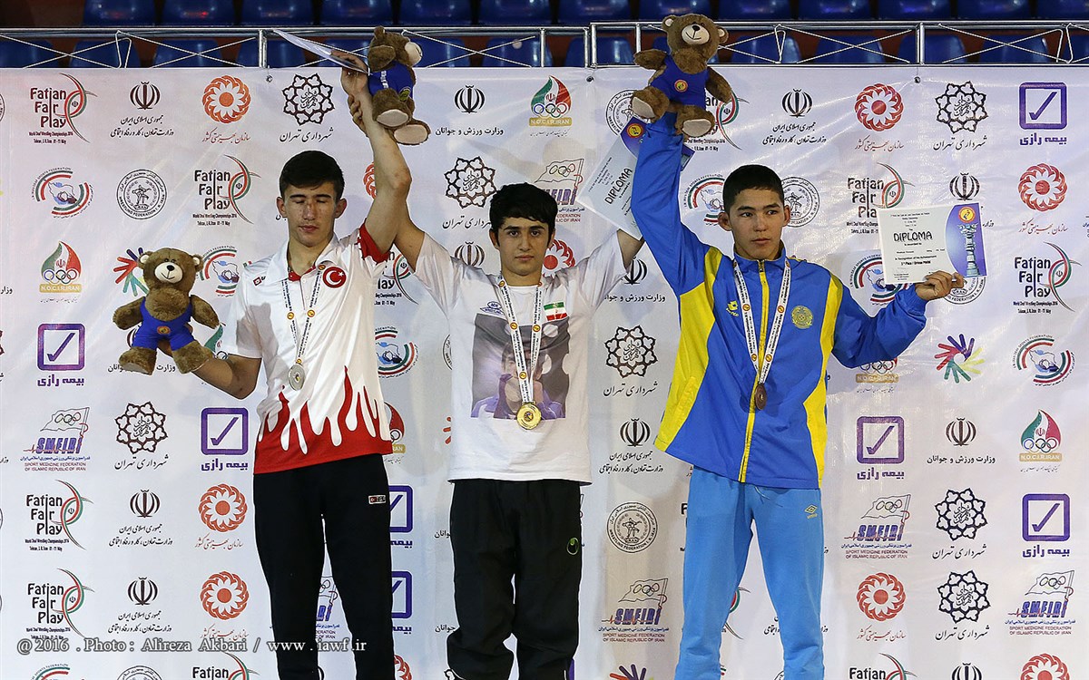 مراسم اهدای مدال و کاپ قهرمانی رقابت های کشتی آزاد نوجوانان