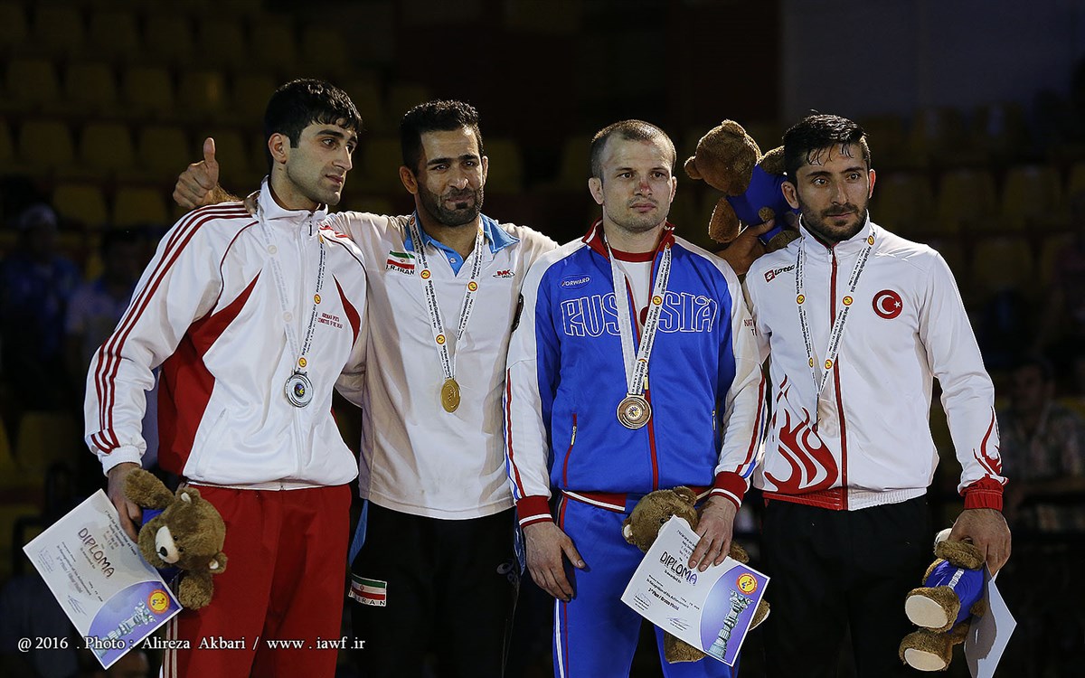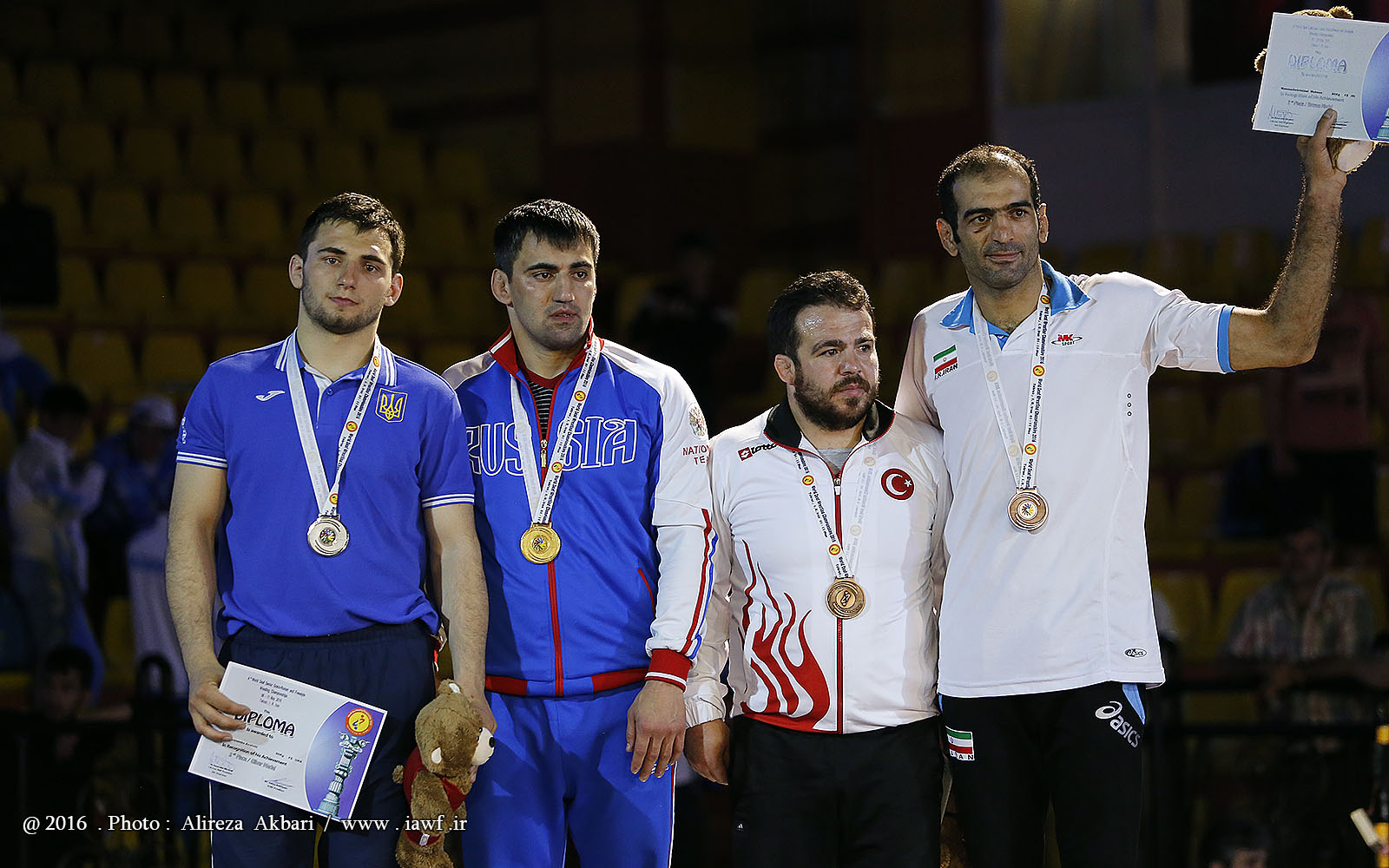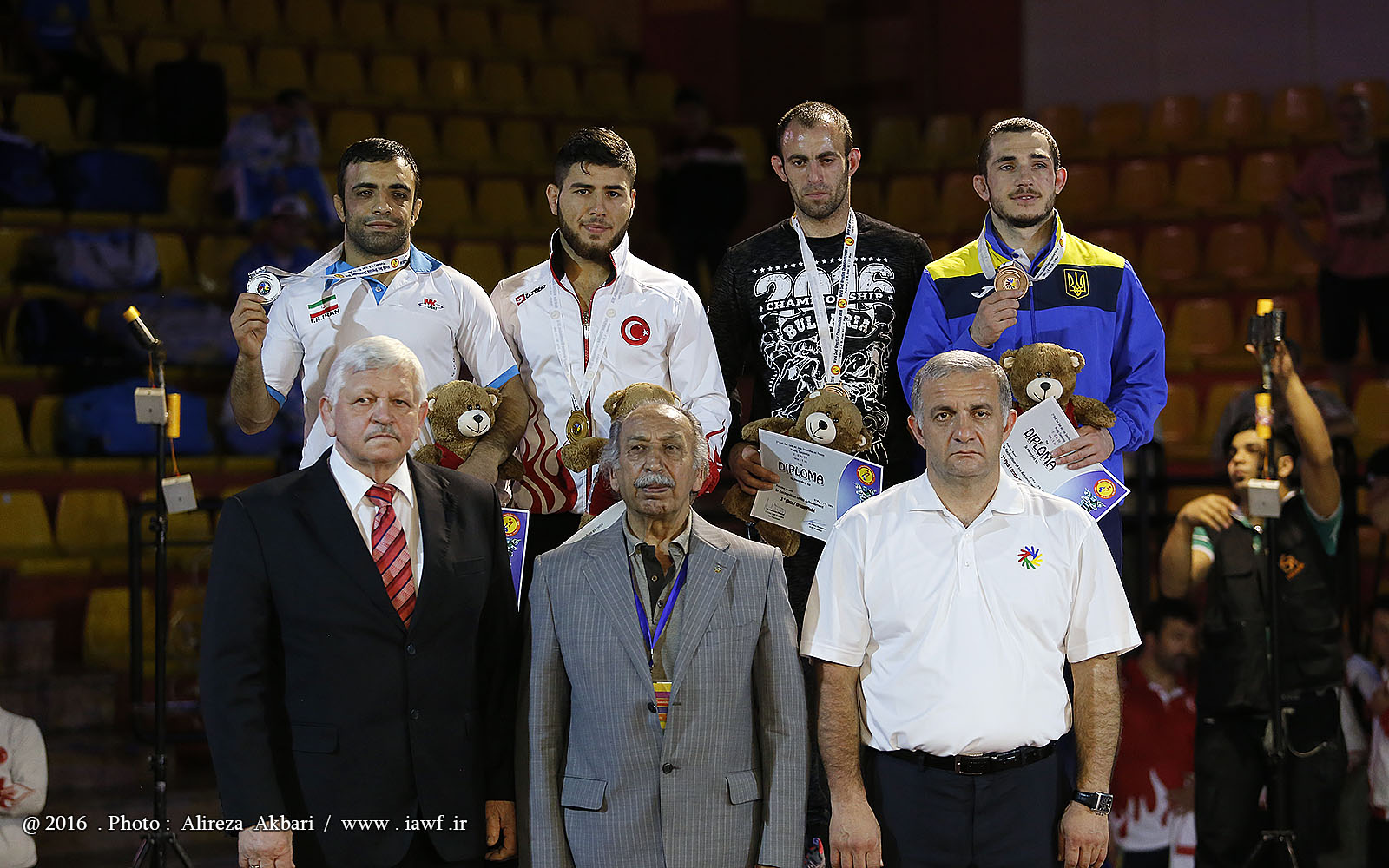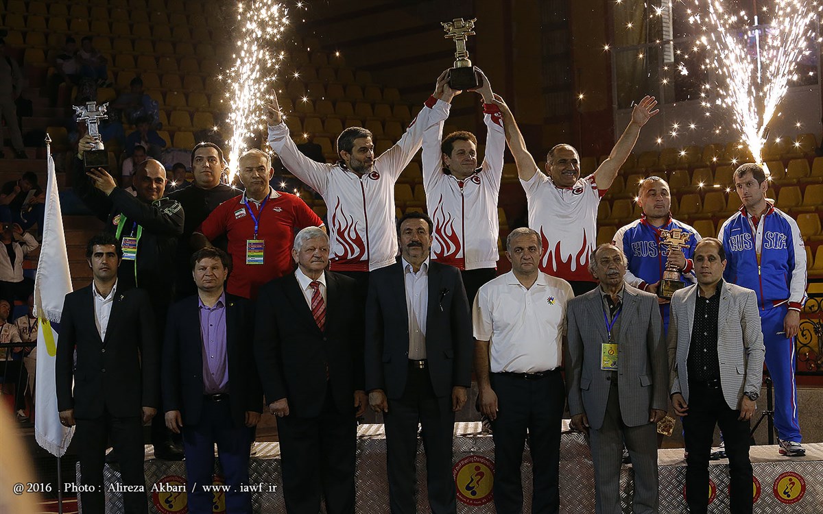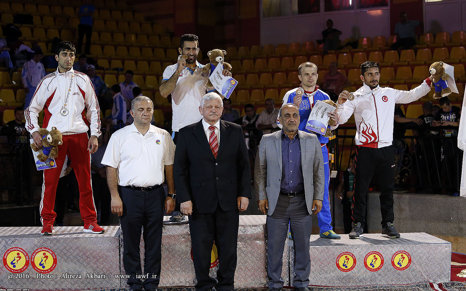 اهدای کاپ و مدال قهرمانی مسابقات کشتی آزاد