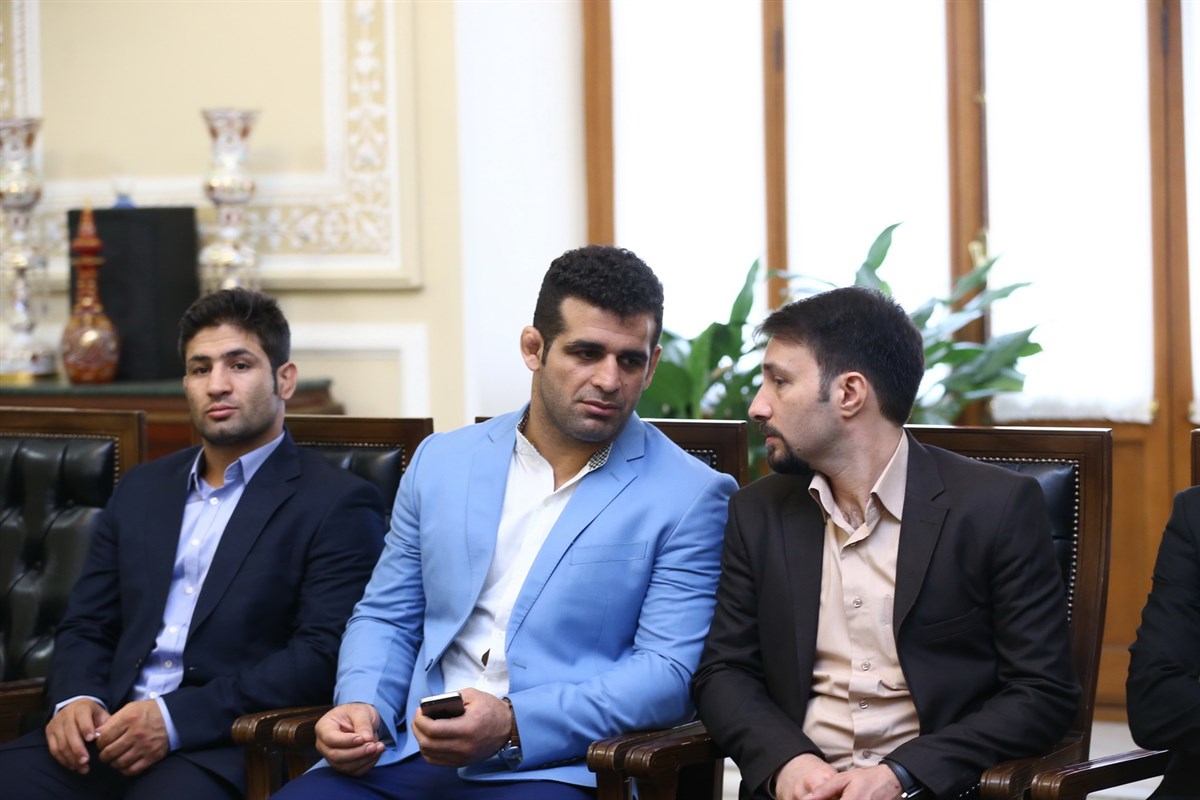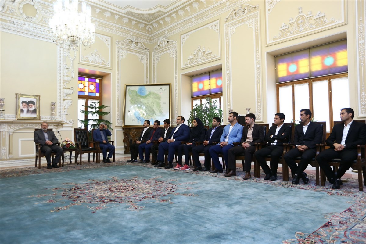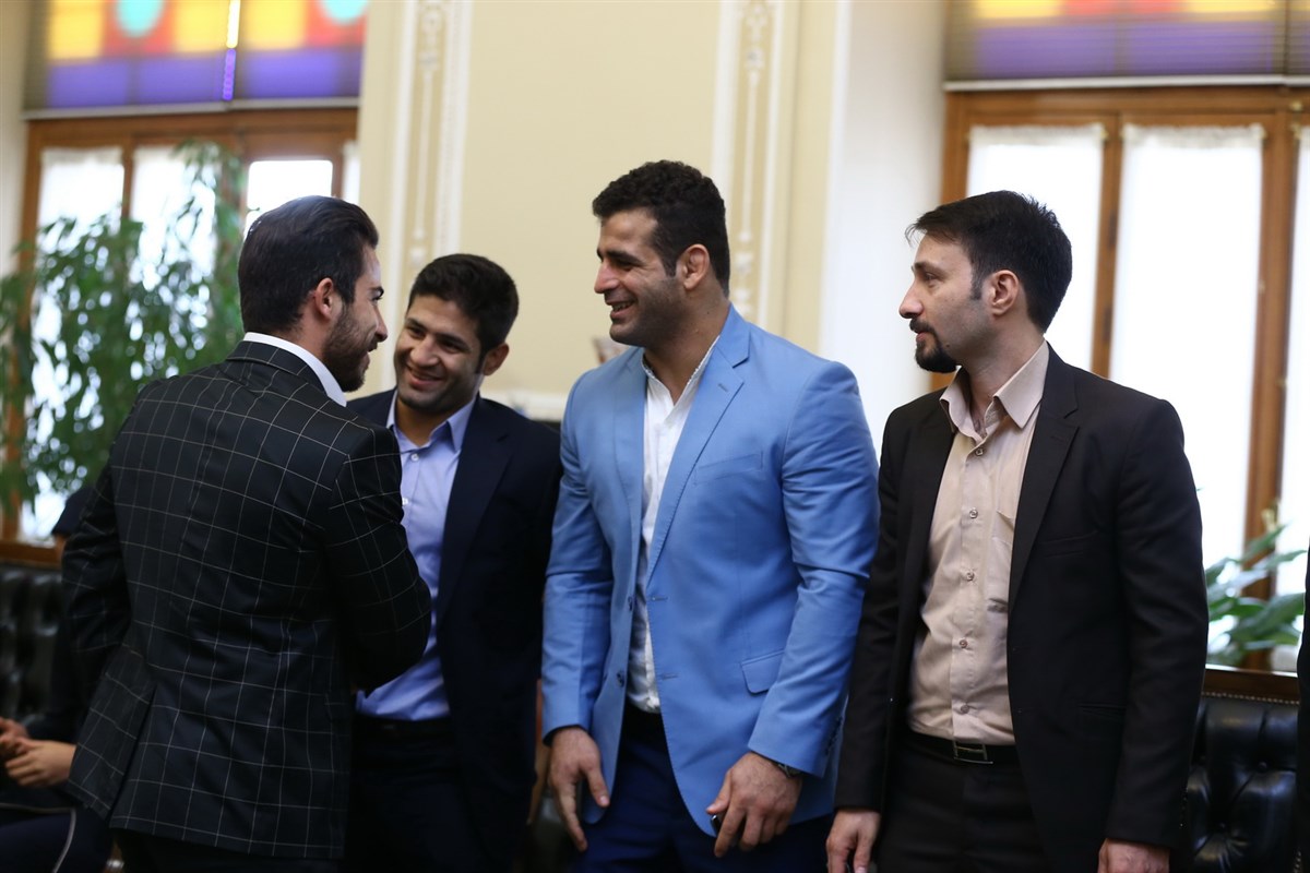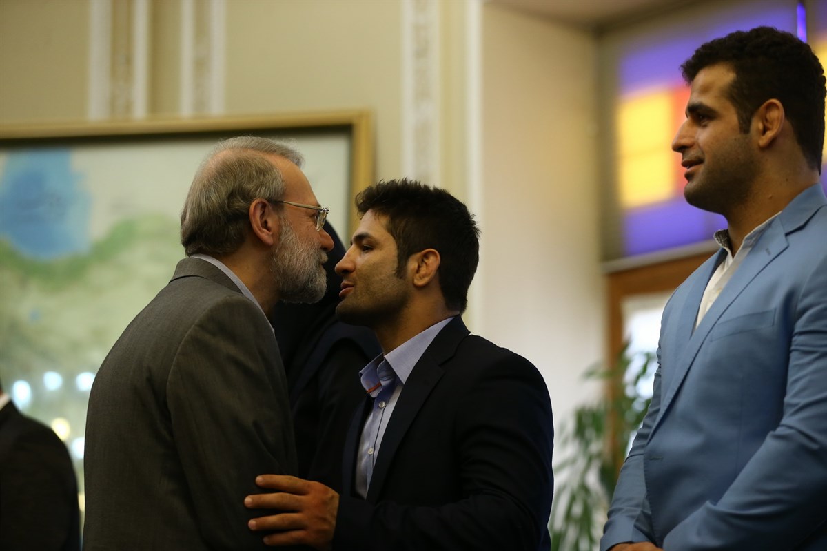 دیدار مدال آوران کشتی در المپیک با رئیس مجلس شورای اسلامی (گزارش تصویری)