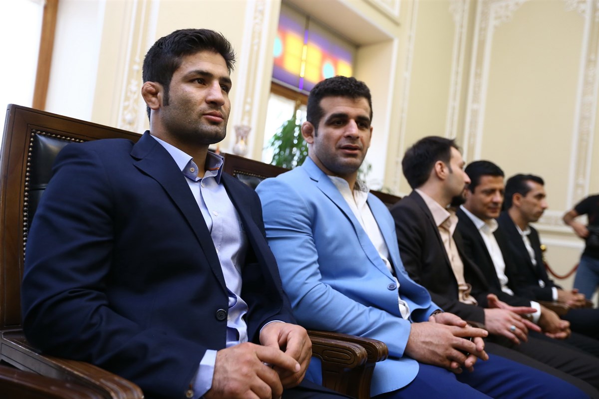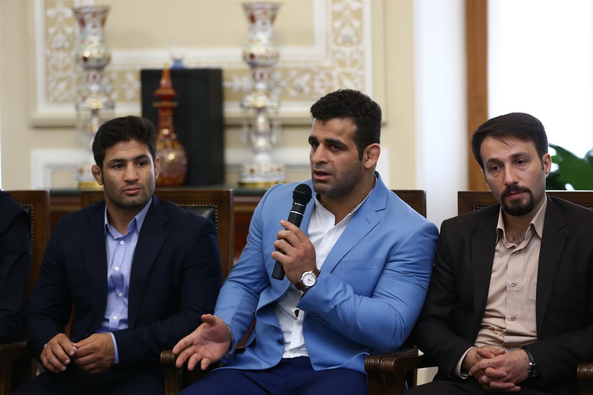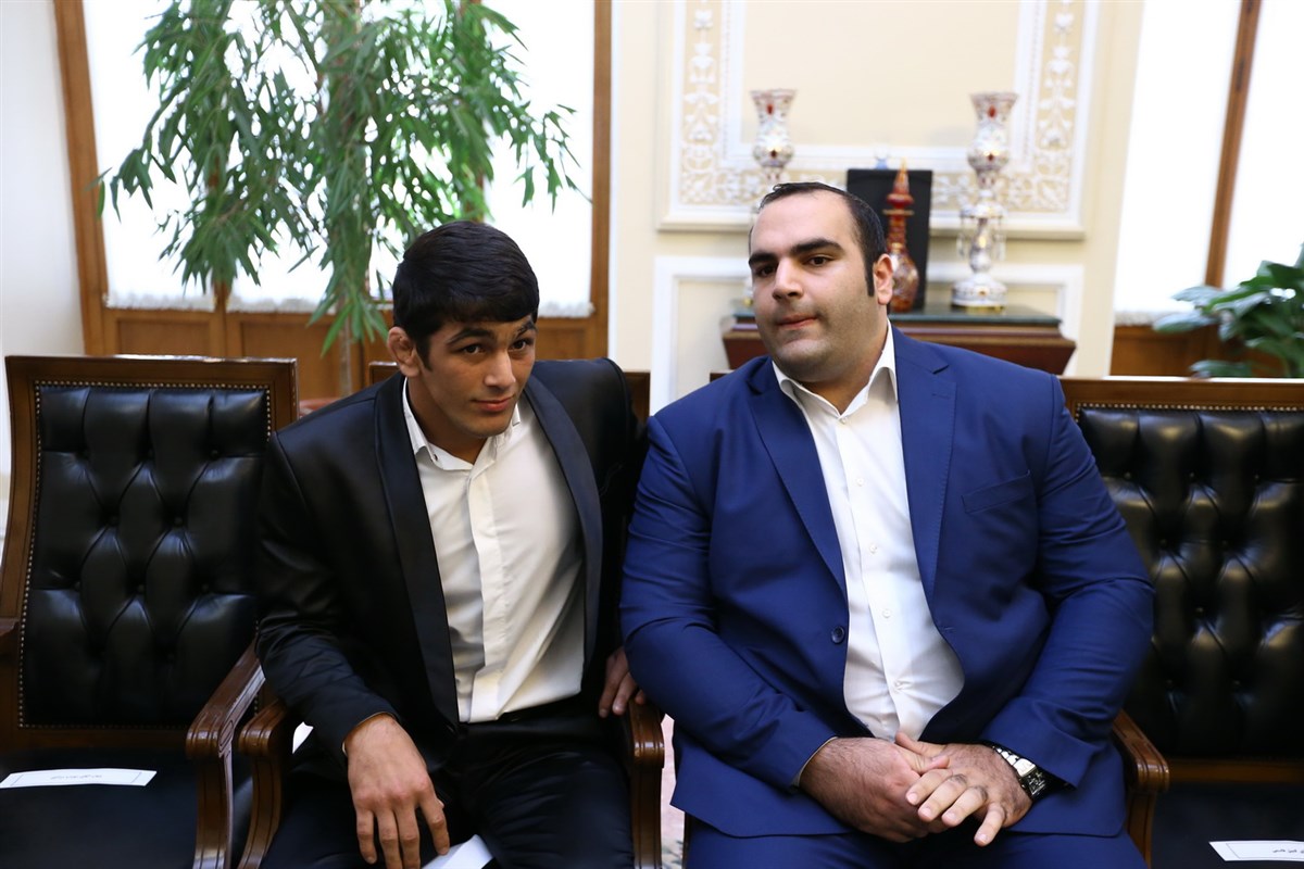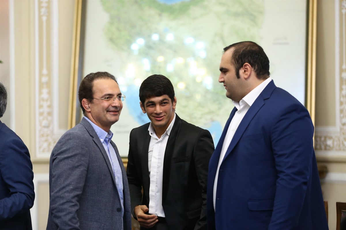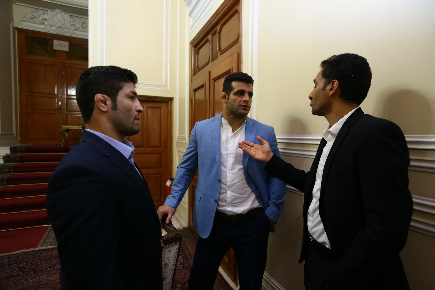 دیدار مدال آوران کشتی در المپیک با رئیس مجلس شورای اسلامی (گزارش تصویری)