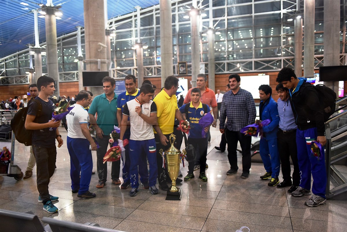 بازگشت تیم ملی کشتی فرنگی نوجوانان پس از قهرمانی در مسابقات جهانی (گزارش تصویری)