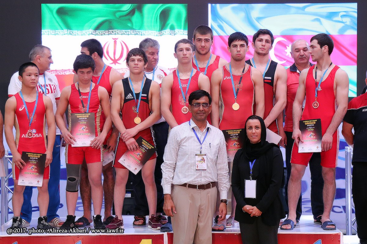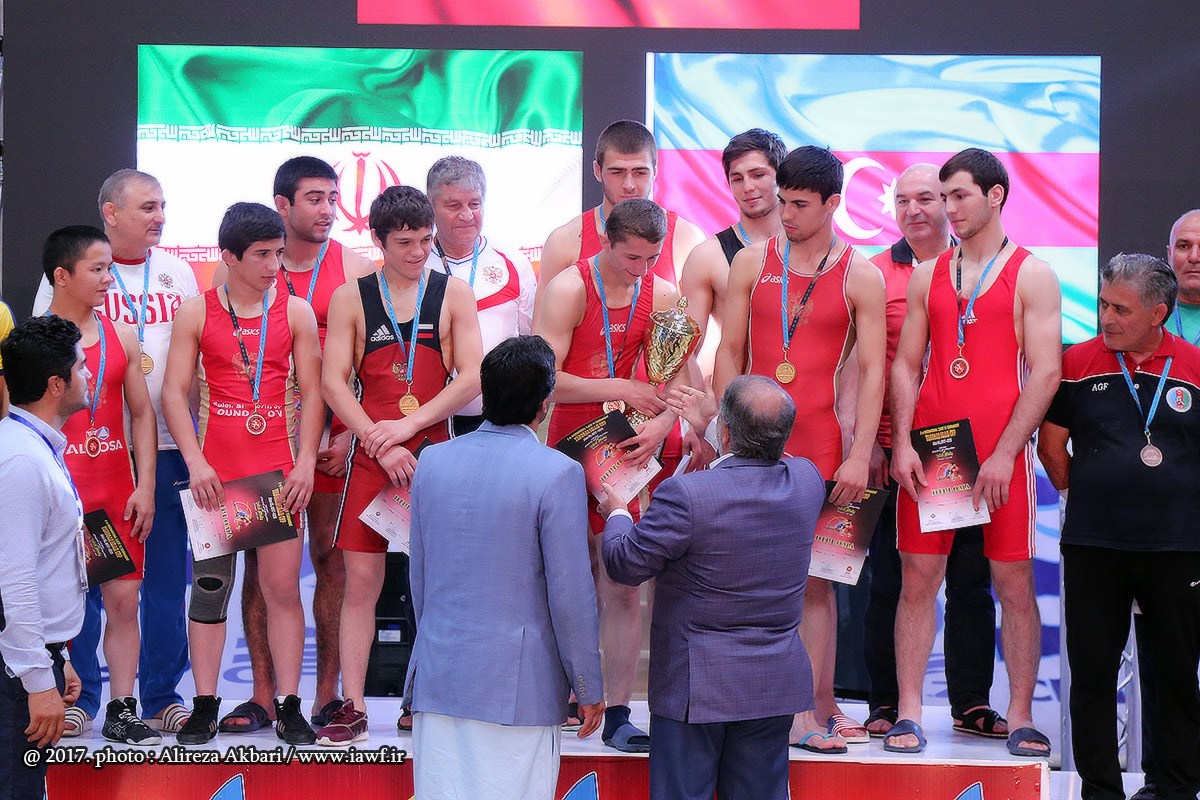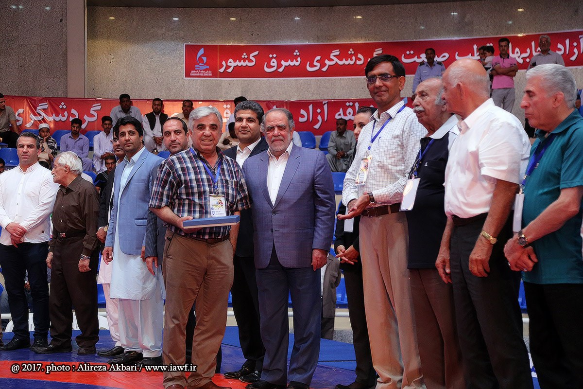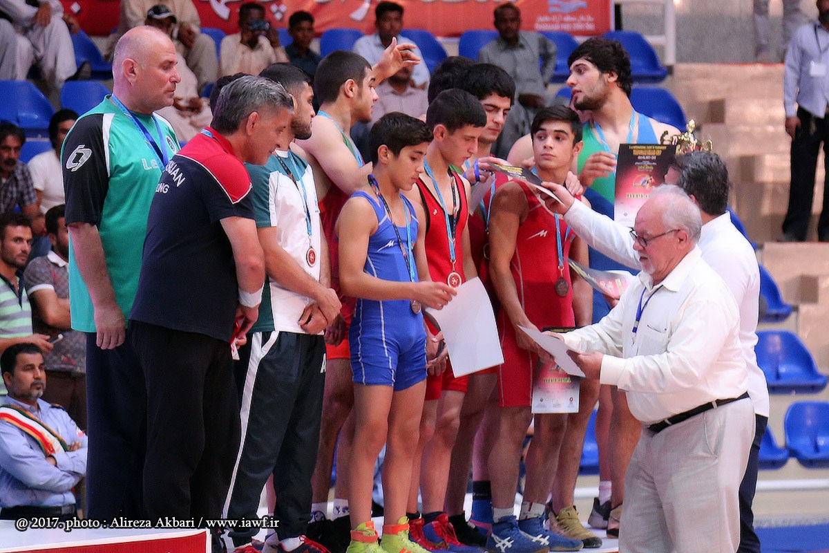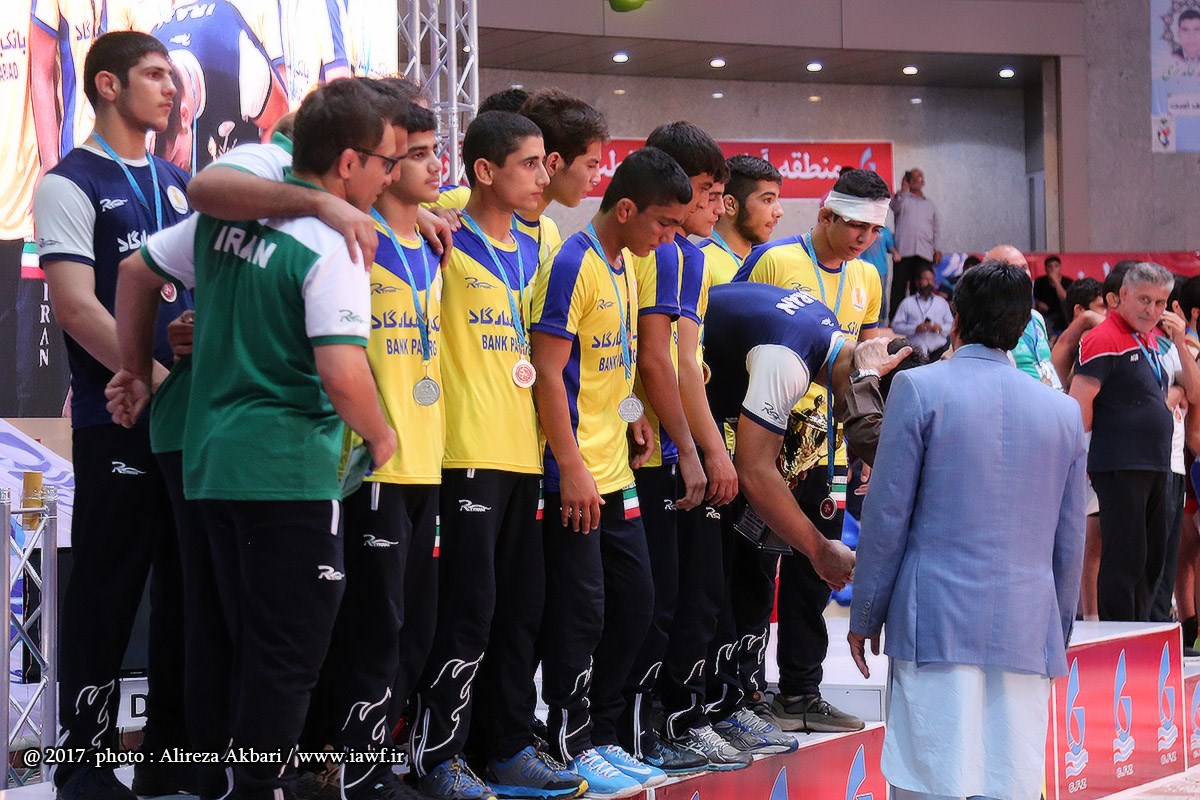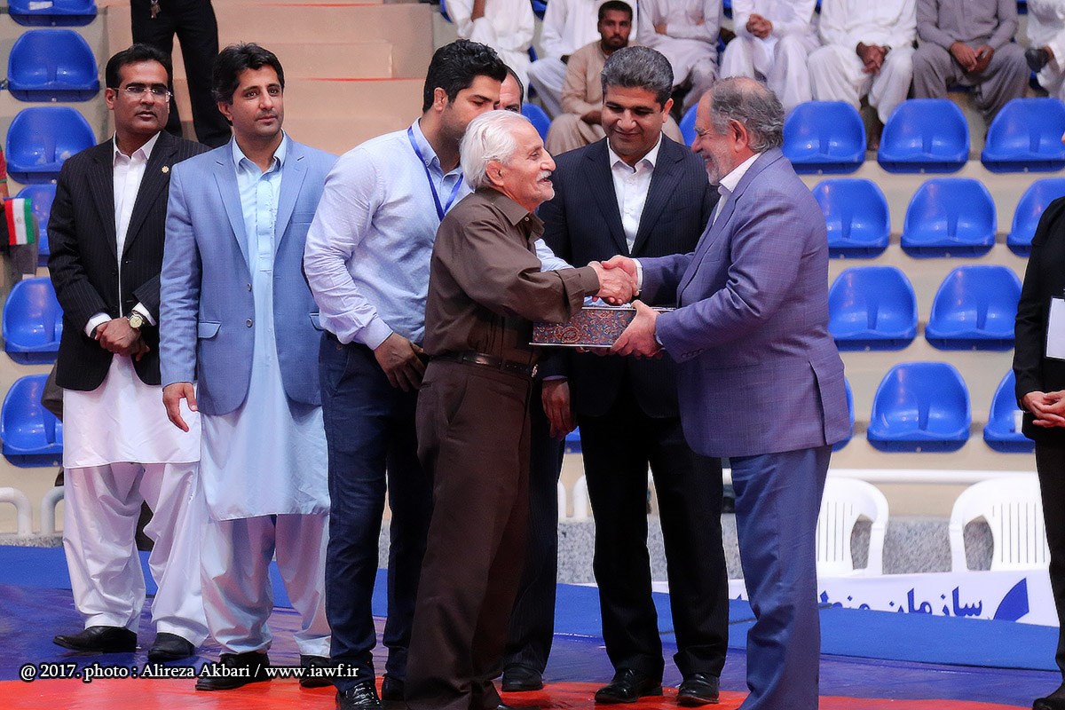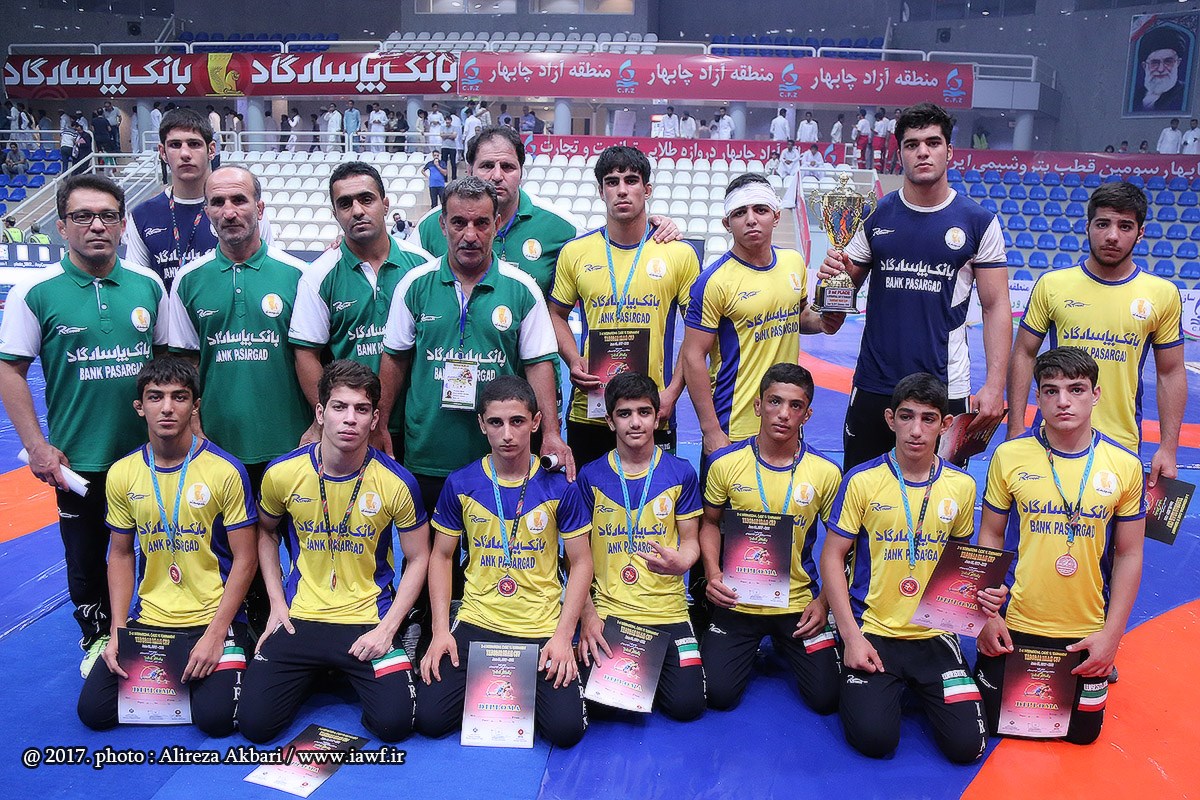 مراسم اهدای کاپ و مدال قهرمانی سومین دوره رقابت های بین المللی کشتی آزاد نوجوانان جام یادگار امام (ره) در سالن ورنا منطقه آزاد چابهار