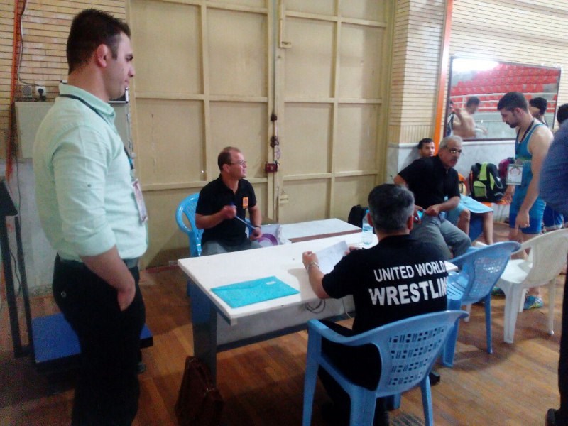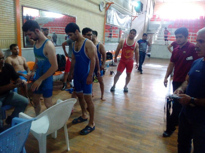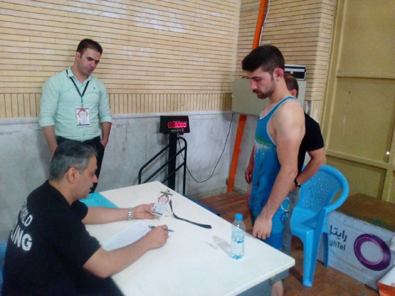 مراسم وزن کشی دیدار تیم های هیأت کشتی هرسین کرمانشاه و هیأت کشتی خراسان رضوی