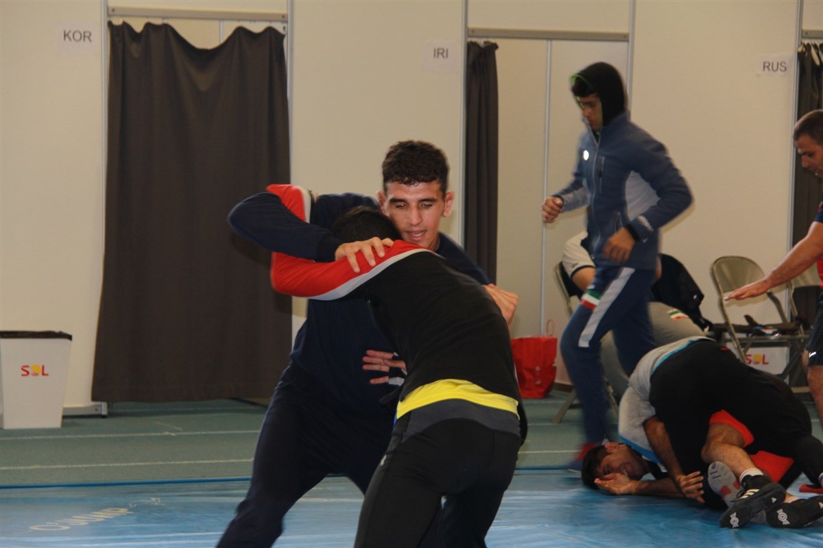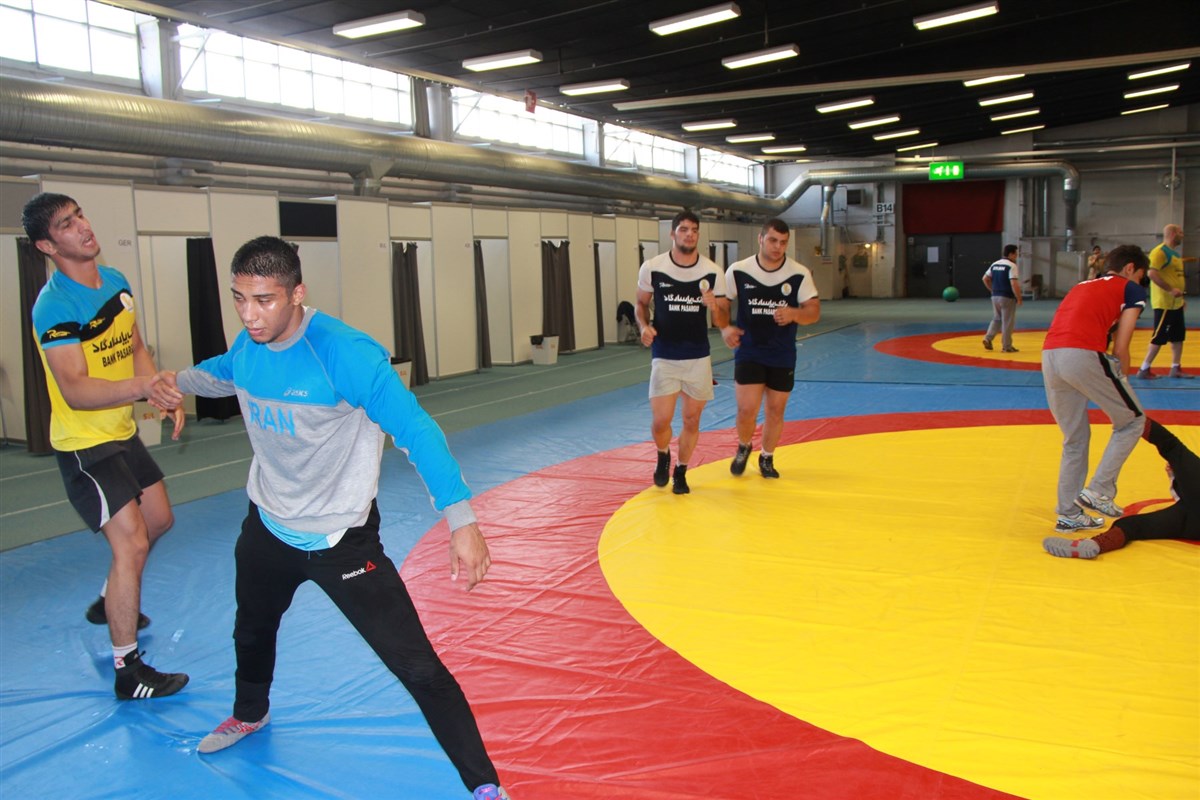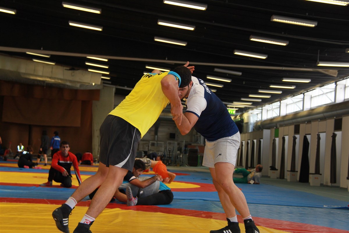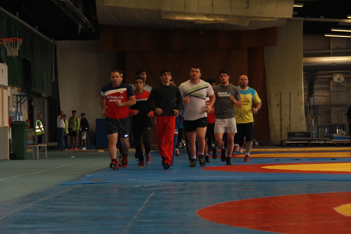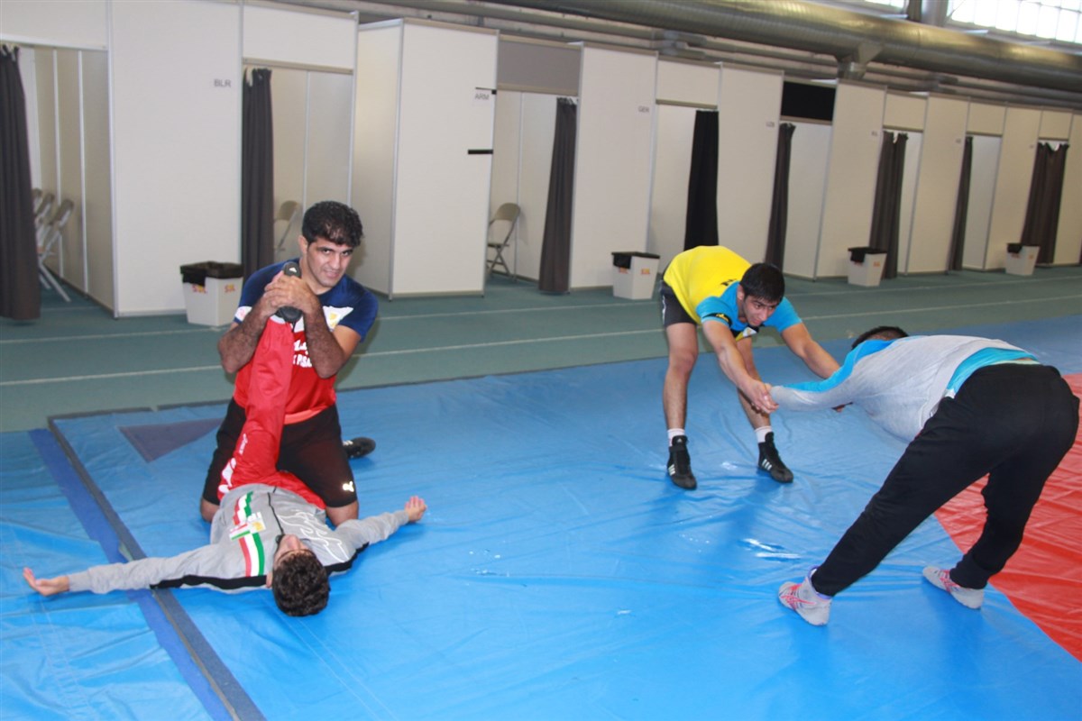 تمرین آزادکاران در محل برگزاری مسابقات