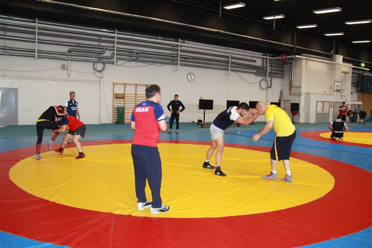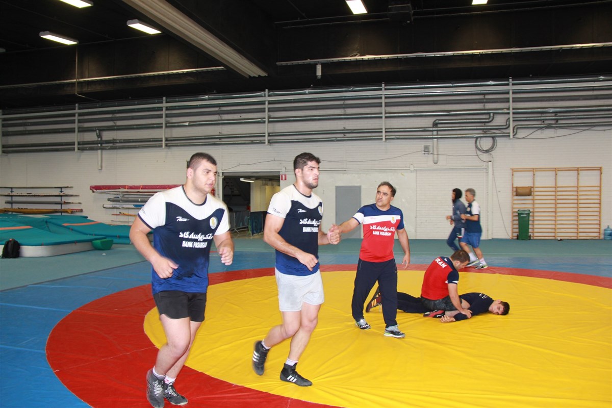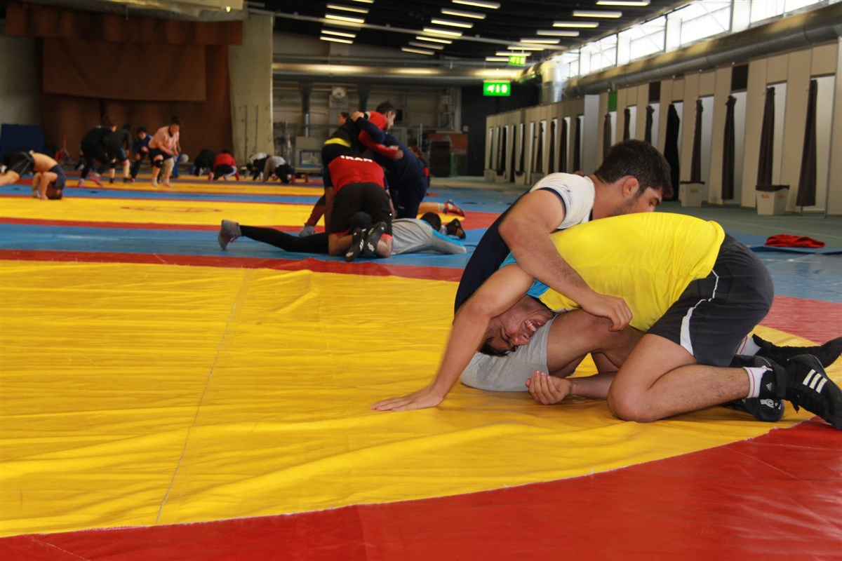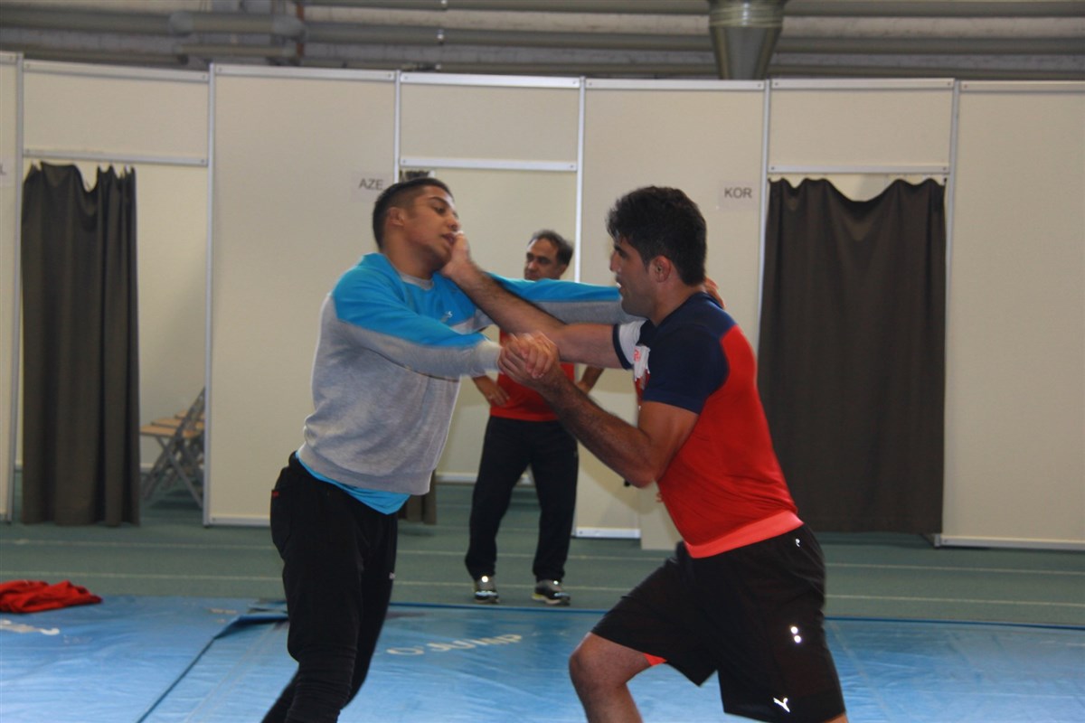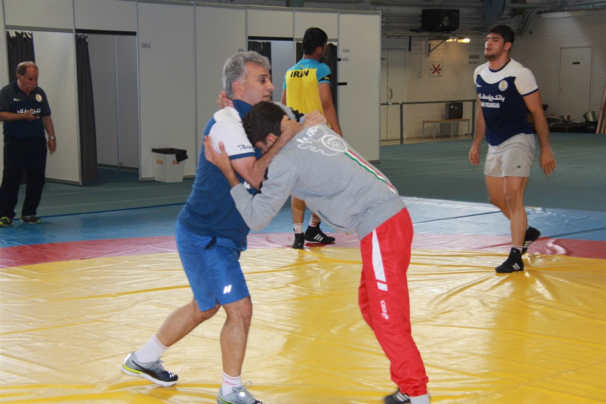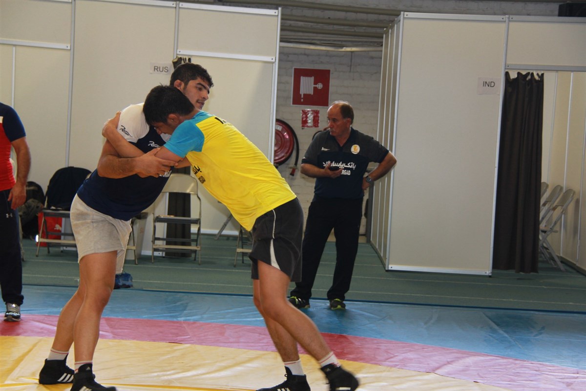 تمرین آزادکاران در محل برگزاری مسابقات