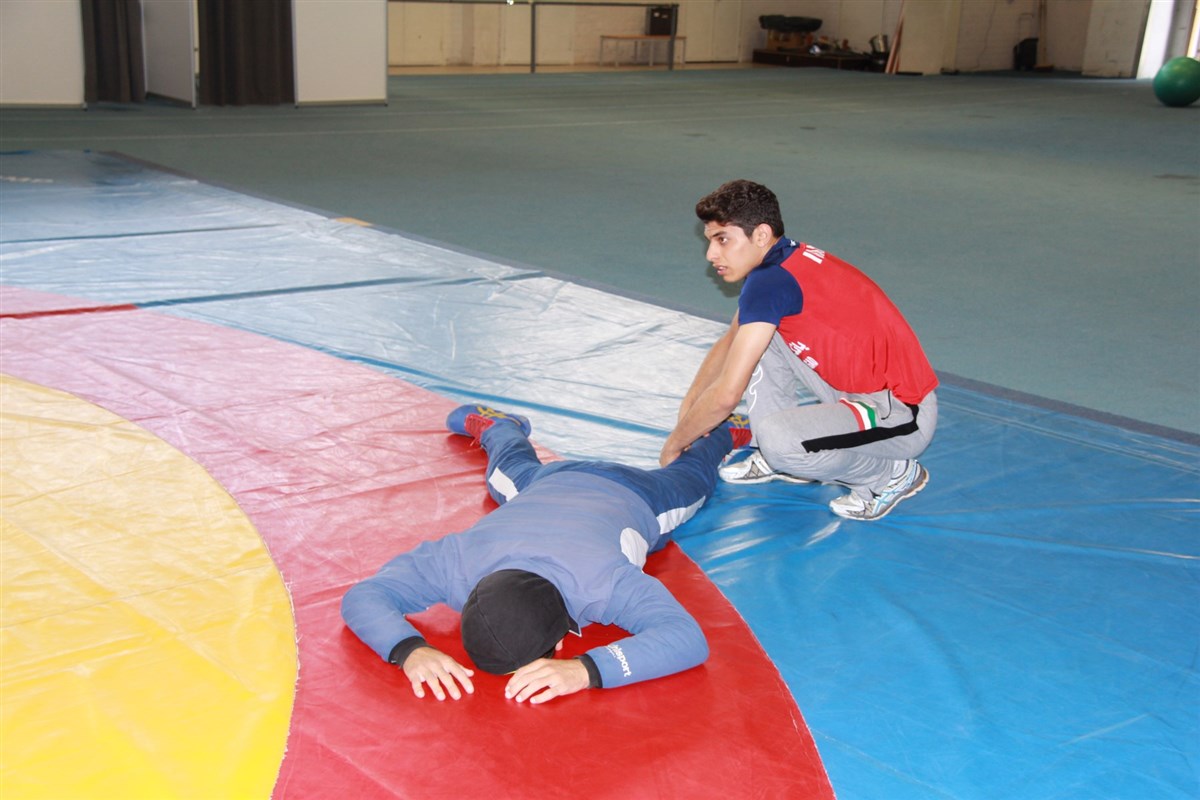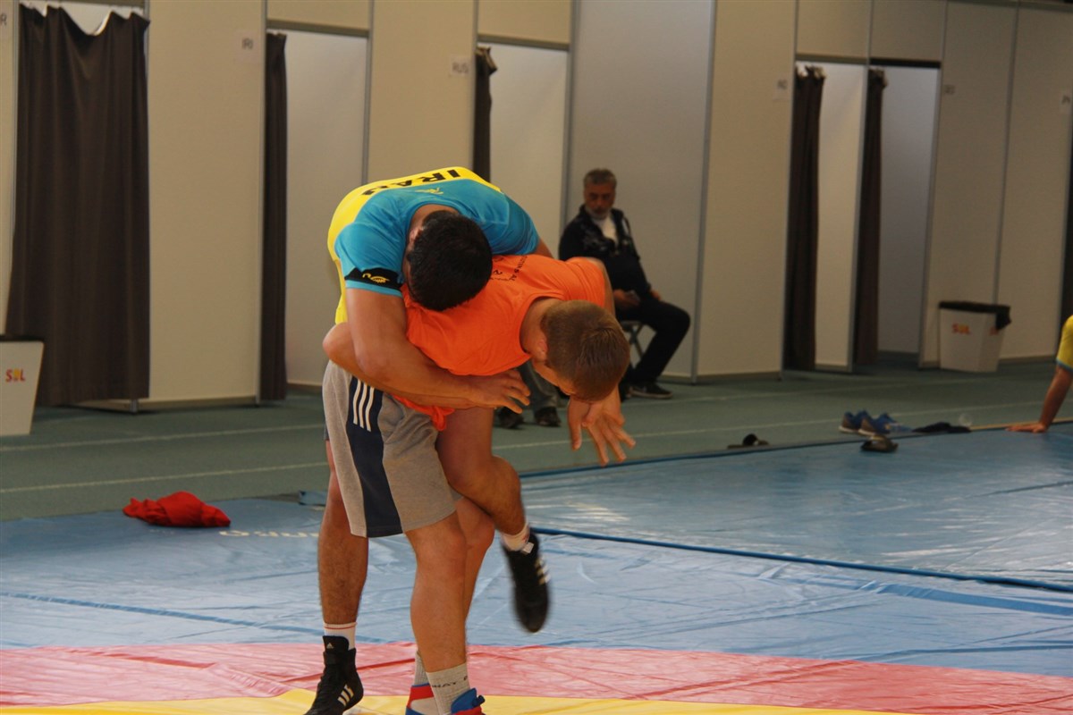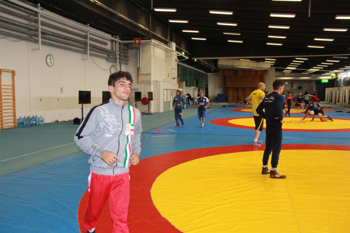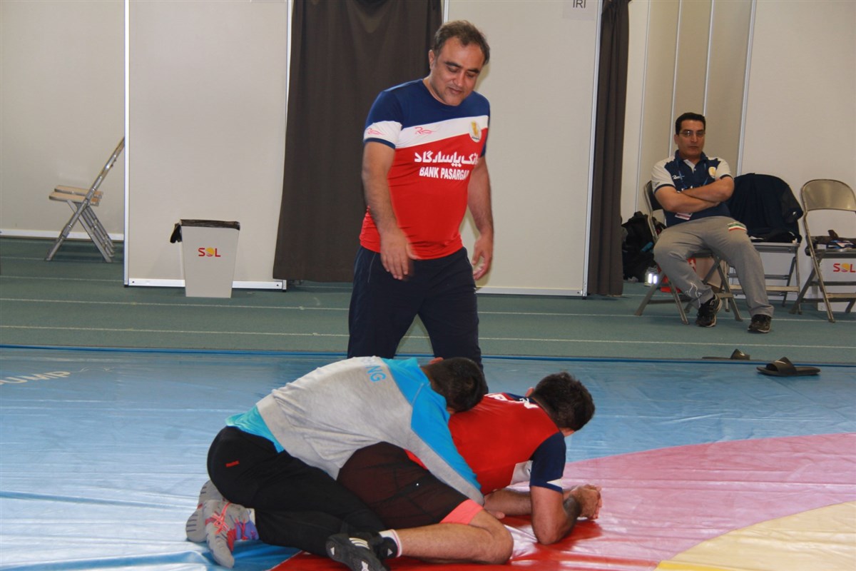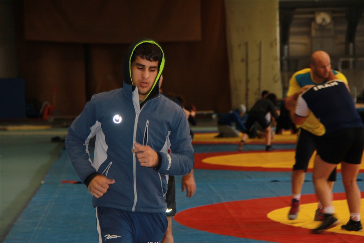 تمرین آزادکاران در محل برگزاری مسابقات