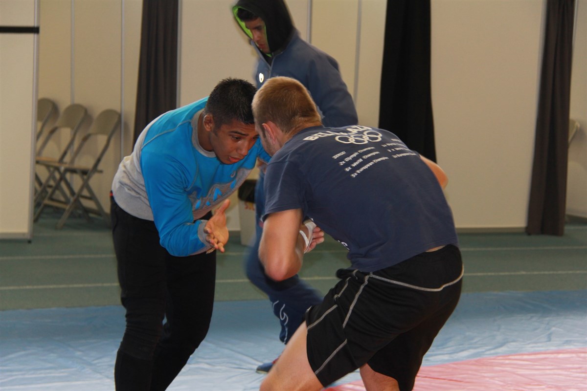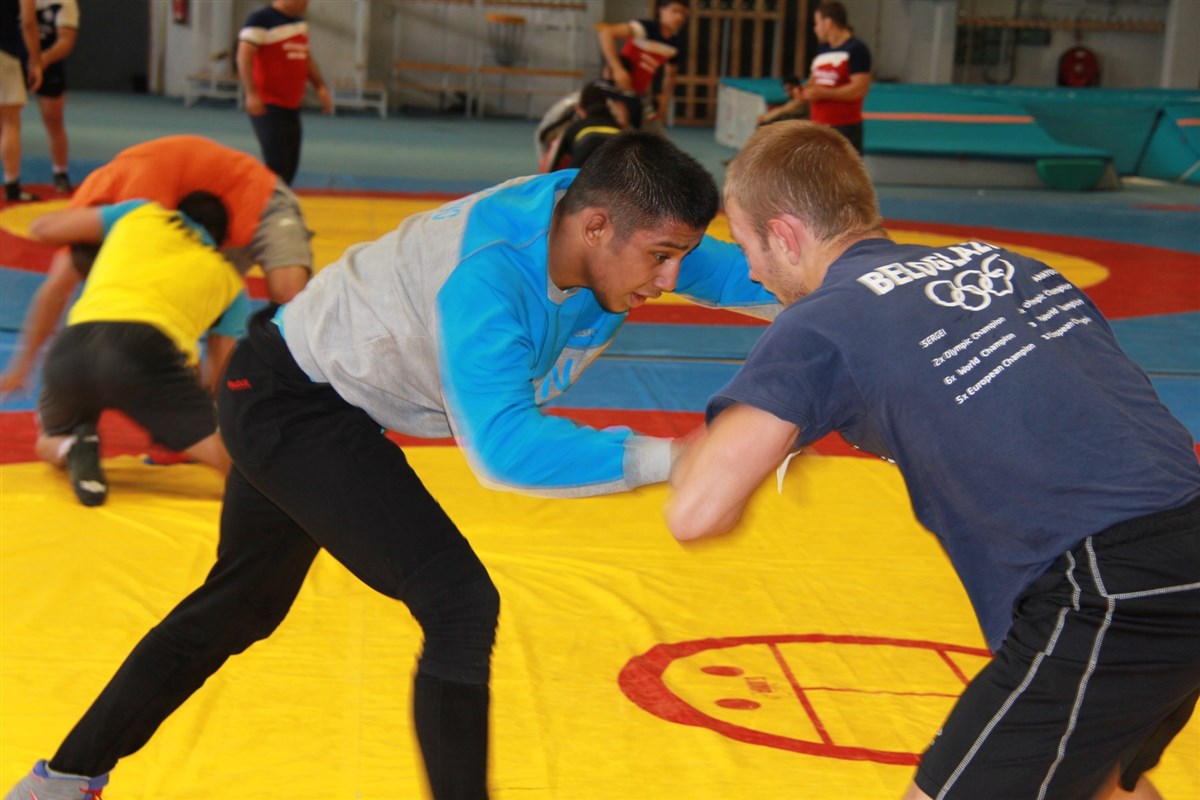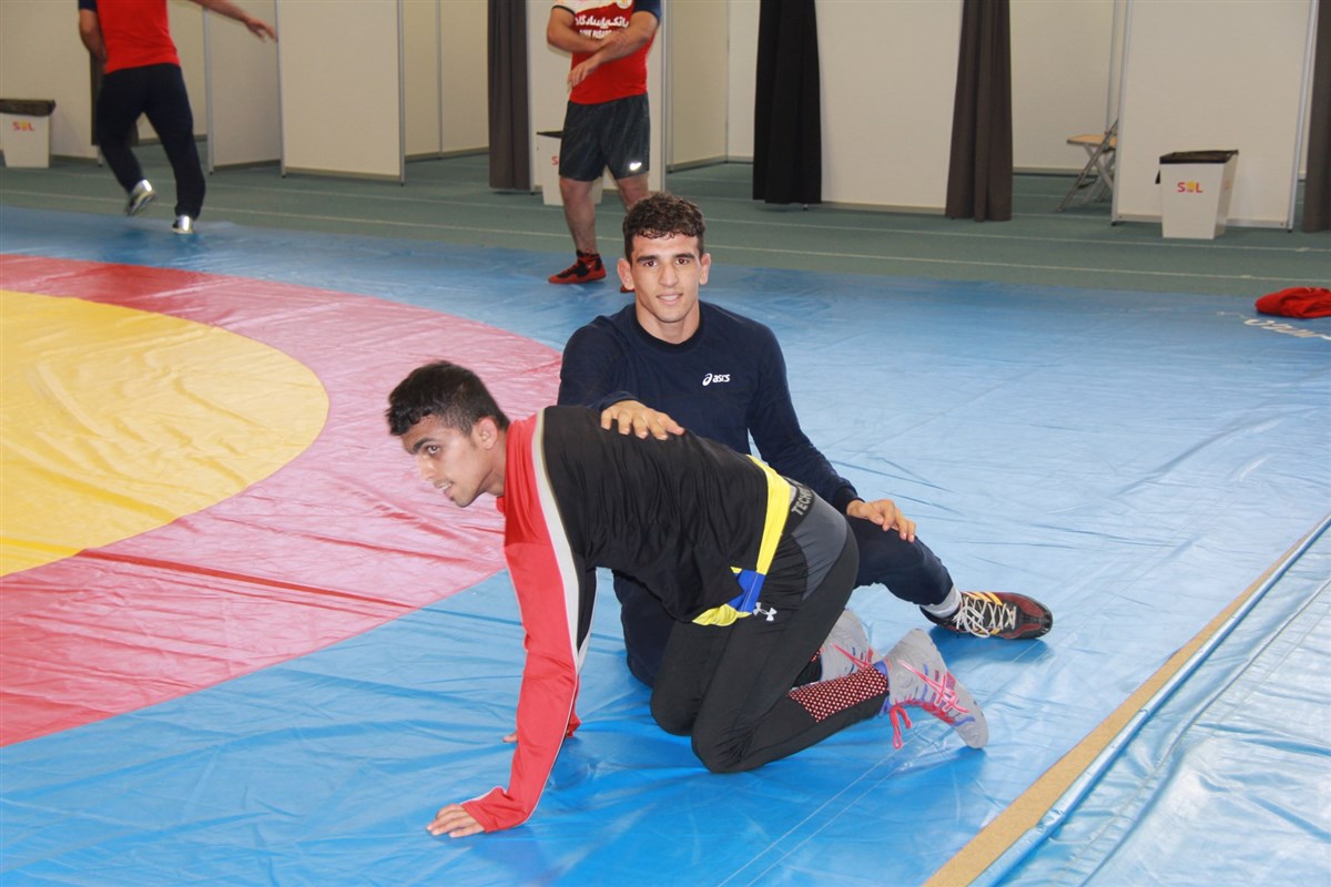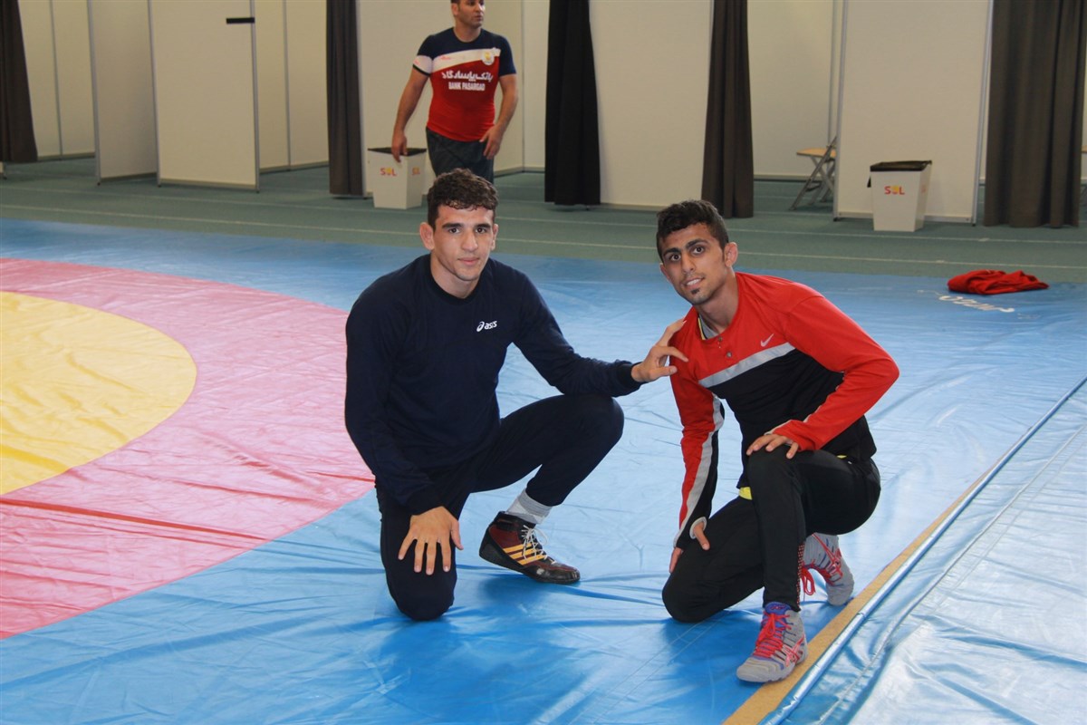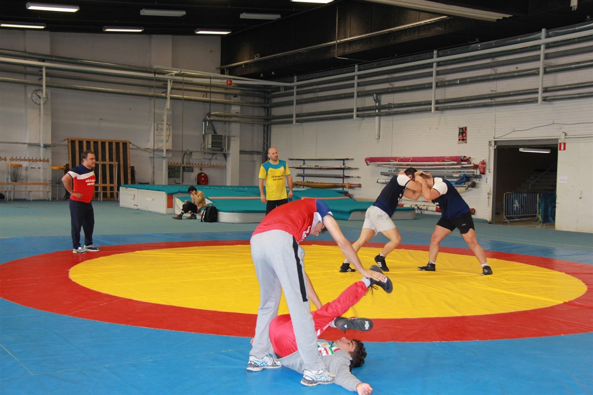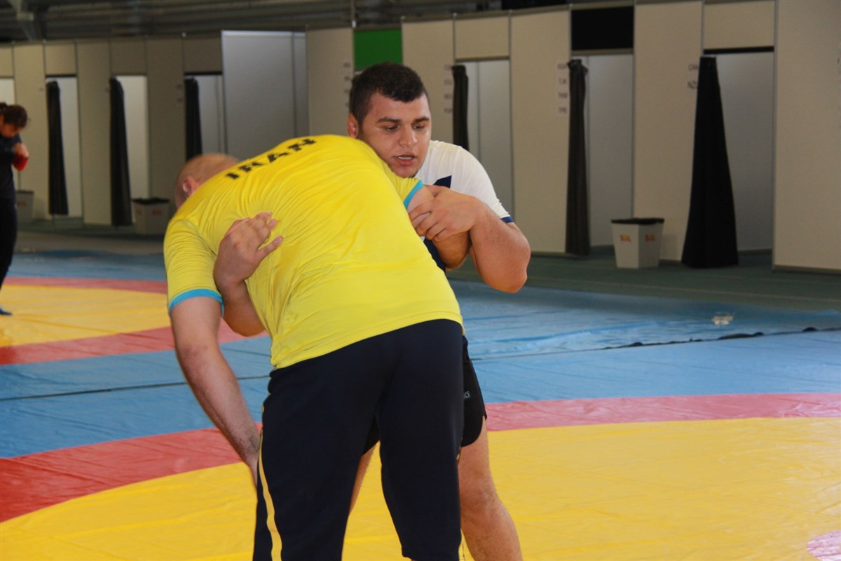 تمرین آزادکاران در محل برگزاری مسابقات