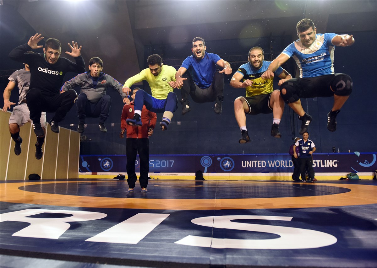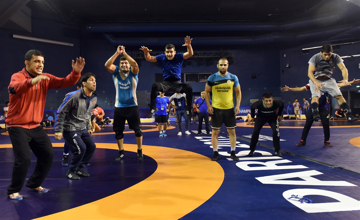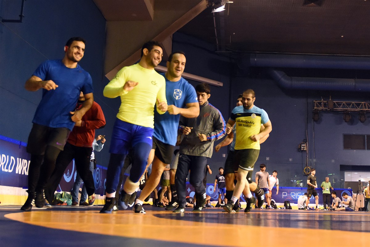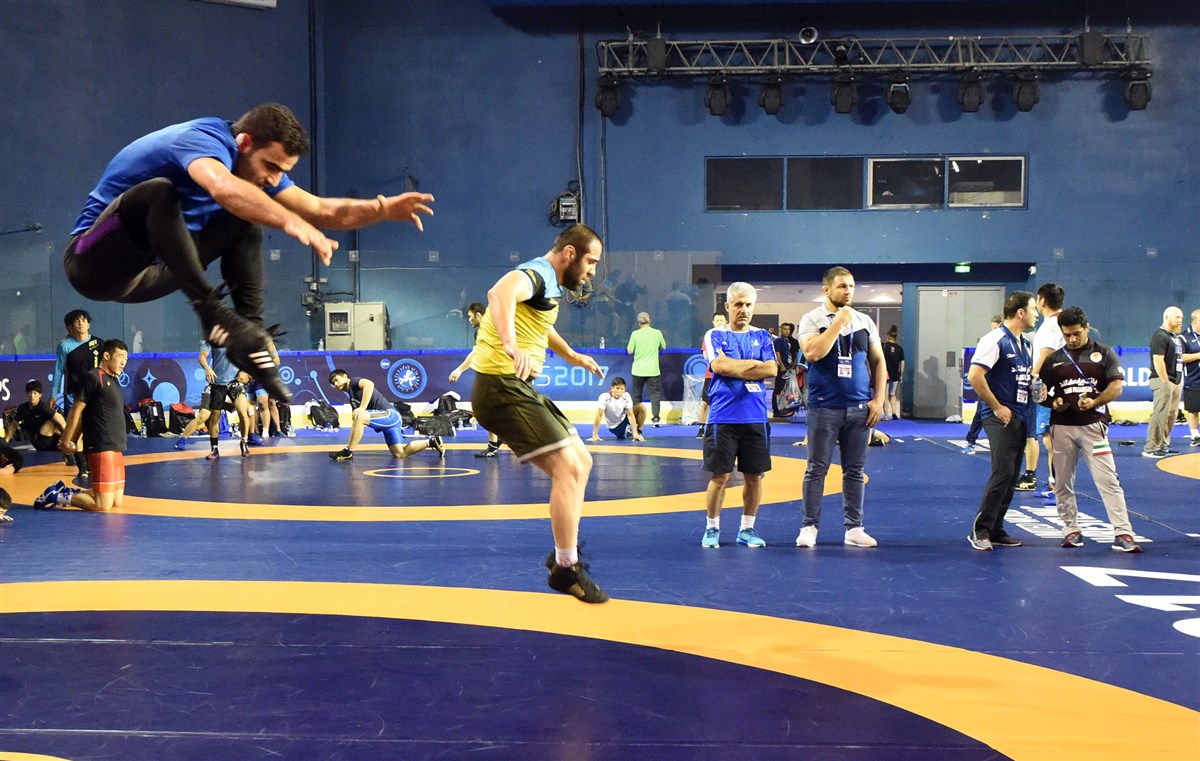 تمرین آزادکاران در محل برگزاری مسابقات