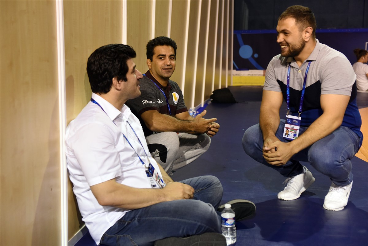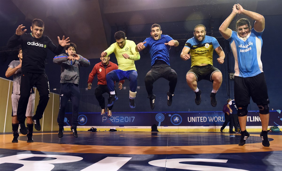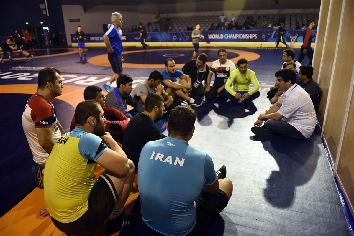 تمرین آزادکاران در محل برگزاری مسابقات