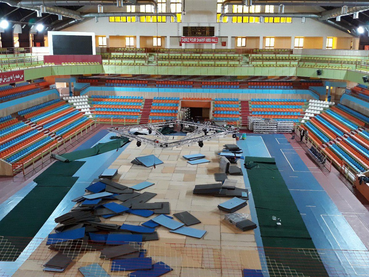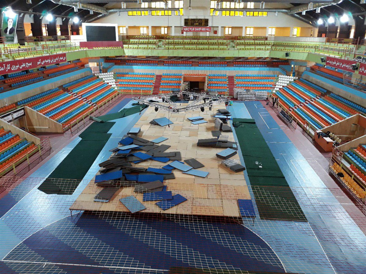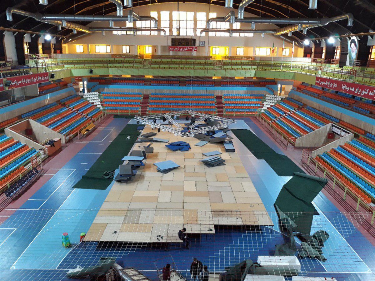 روند آماده سازی سالن پورشریفی محل برگزاری مسابقات