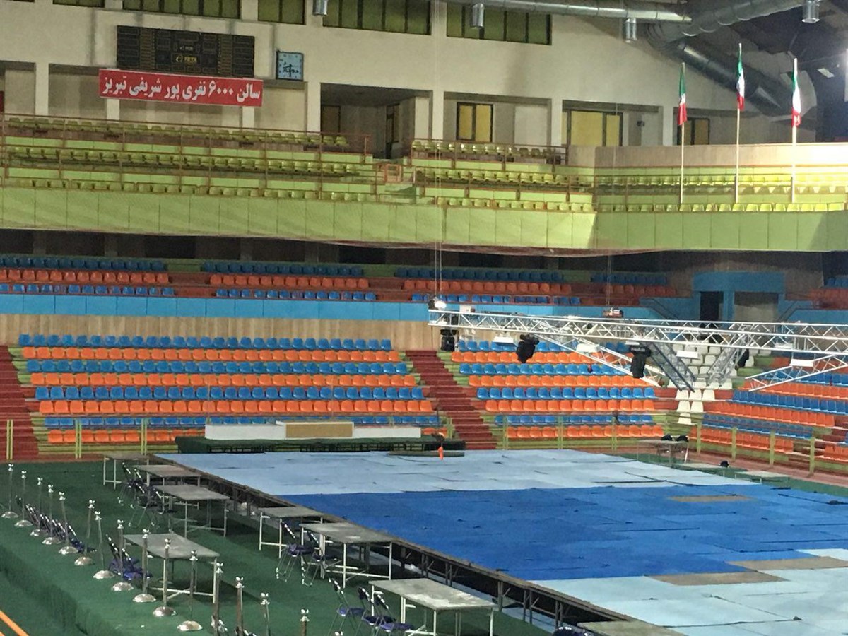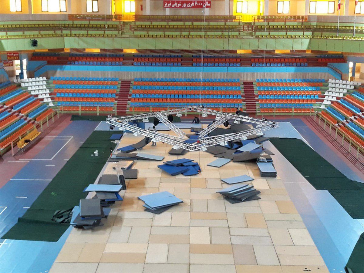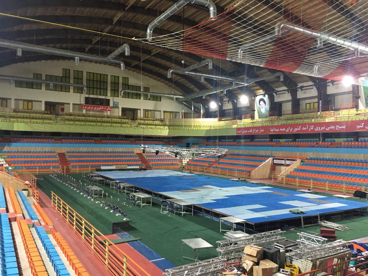 روند آماده سازی سالن پورشریفی محل برگزاری مسابقات