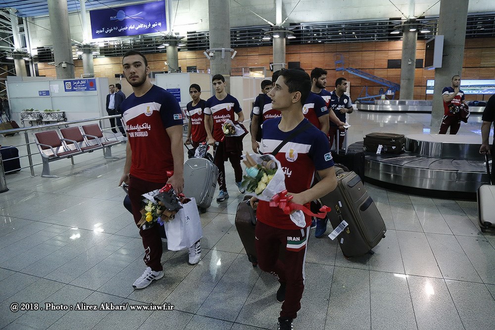 بازگشت تیم ملی کشتی آزاد نوجوانان پس از قهرمانی در رقابت های جهانی کرواسی (گزارش تصویری)