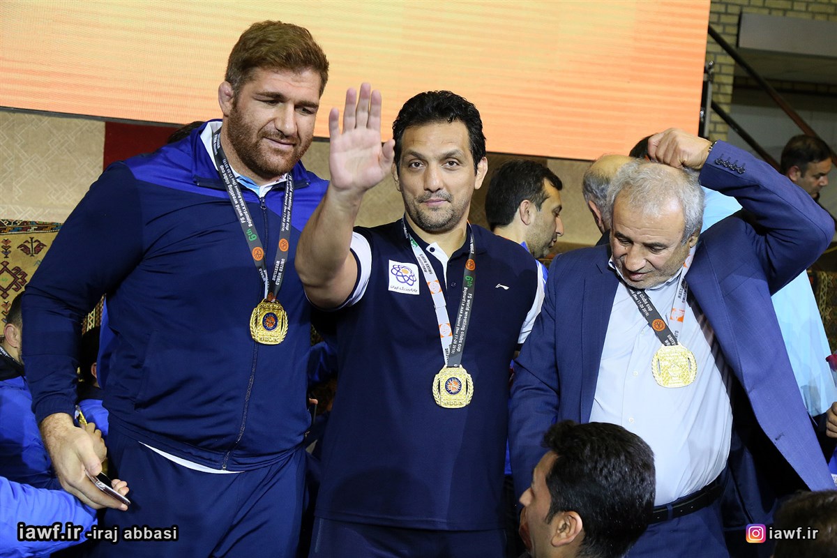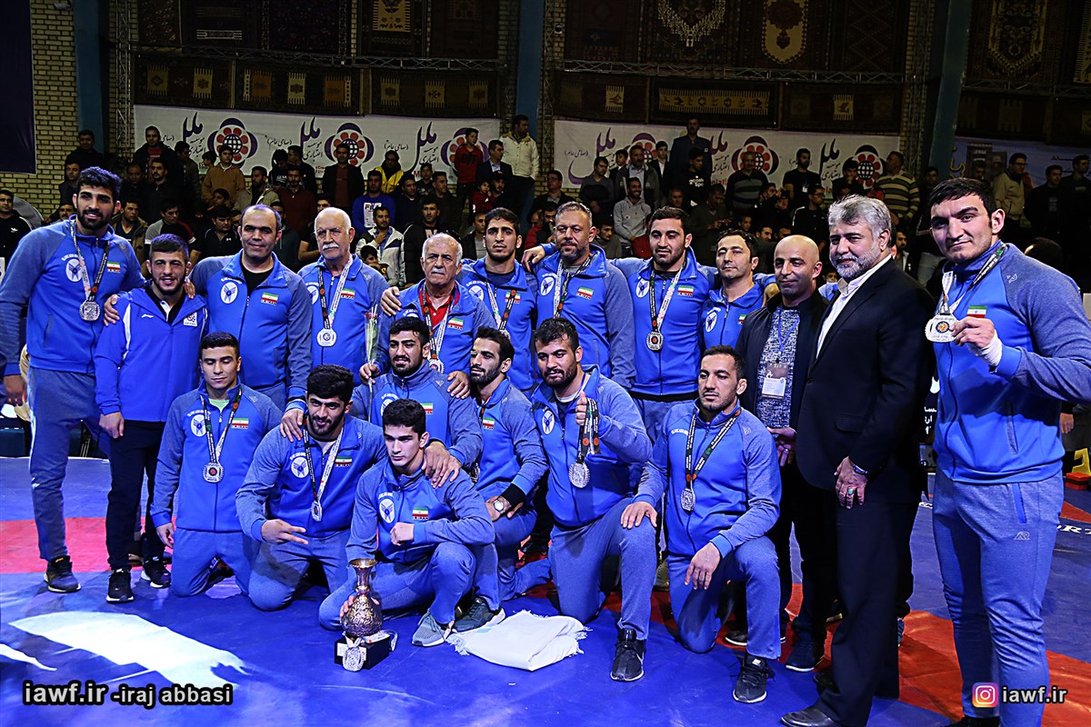 مراسم اهدای مدال و کاپ قهرمانی مسابقات کشتی آزاد