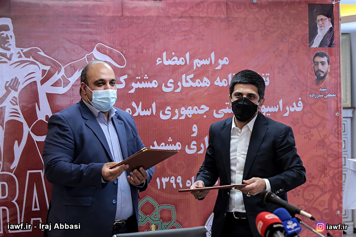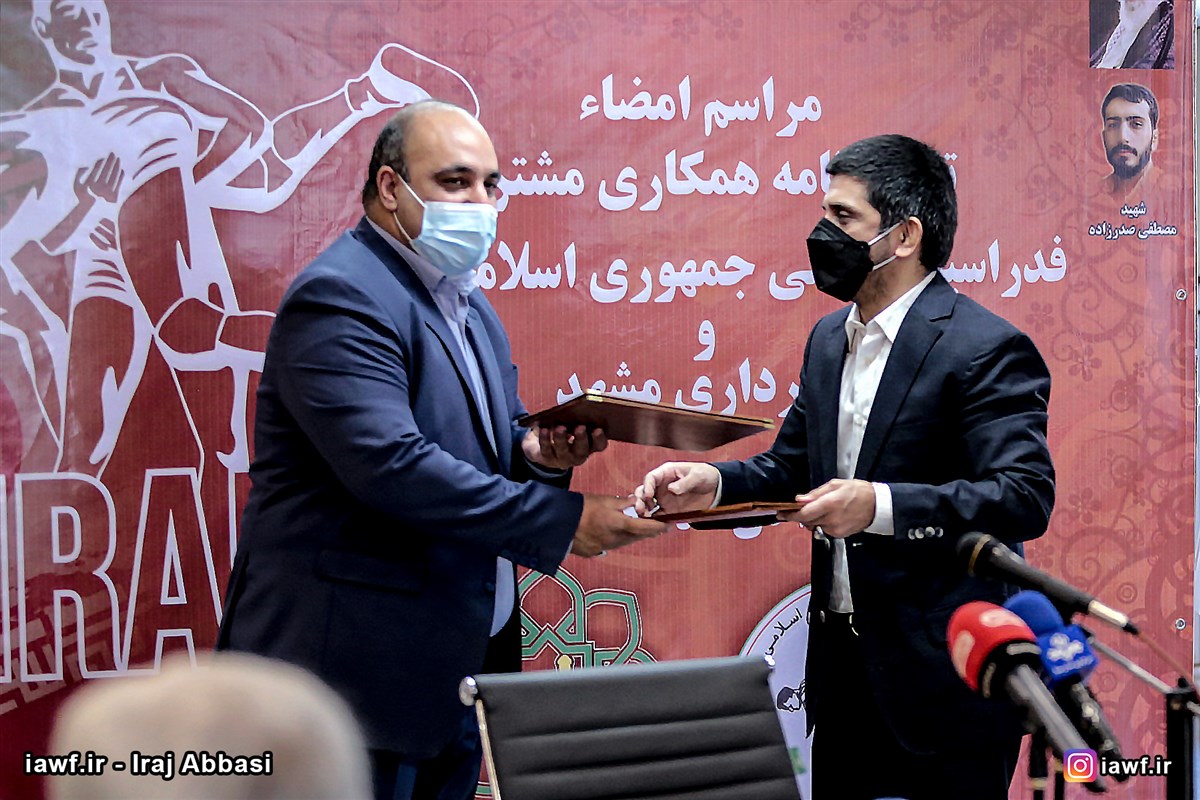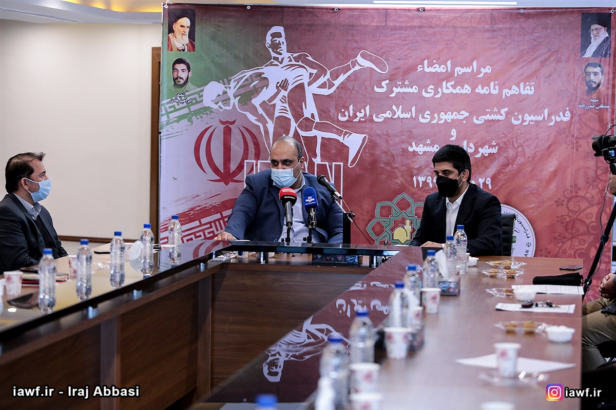 مراسم امضاء تفاهم نامه فدراسیون کشتی با شهرداری مشهد (گزارش تصویری)
