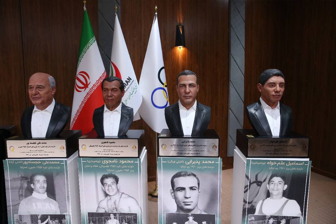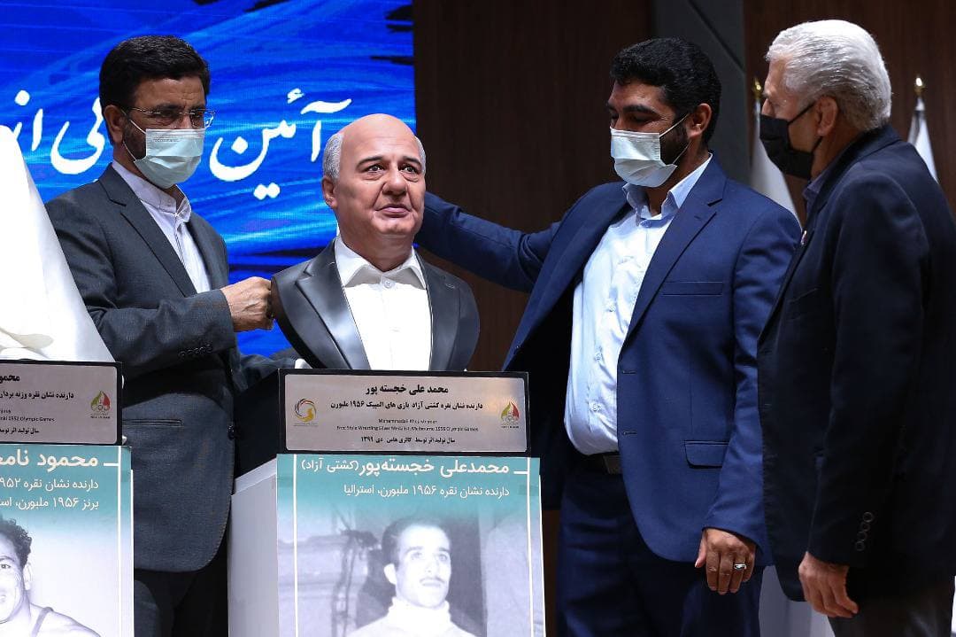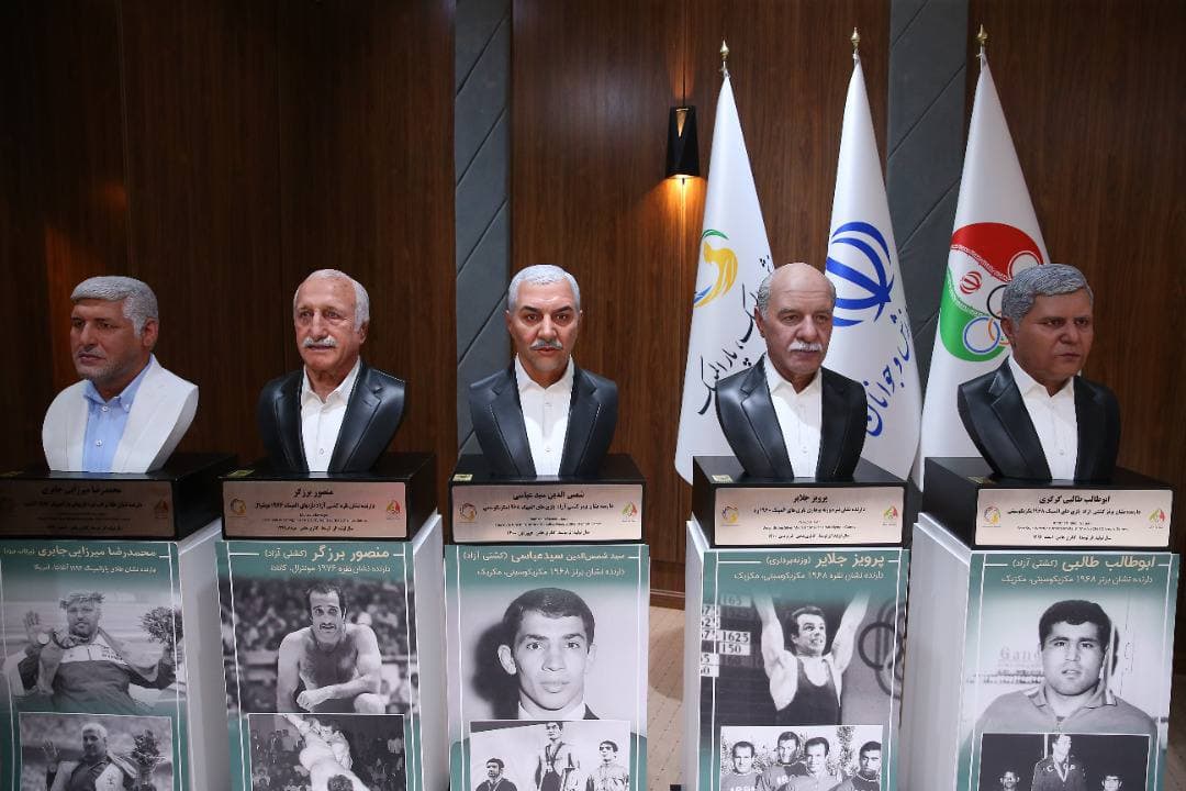 در این مراسم از تندیس محمد علی خجسته پور، محمد پذیرایی، ابوطالب طالبی، سید شمس الدین سید عباسی و منصور برزگر قهرمانان اسبق کشتی در المپیک و محمود نامجو، اسماعیل علم خواه، پرویز جلایر و محمدرضا میرزایی جابری قهرمانان سایر رشته های ورزشی در المپیک رونمایی شد.