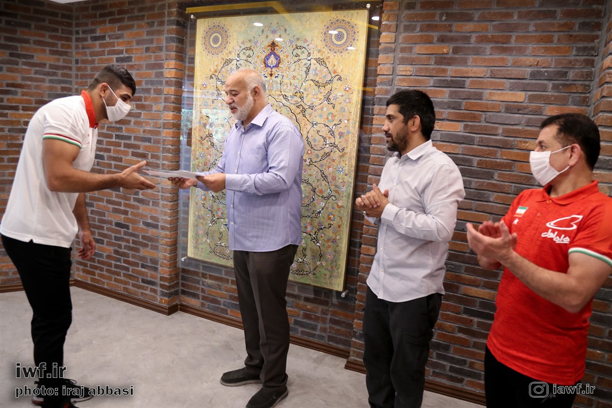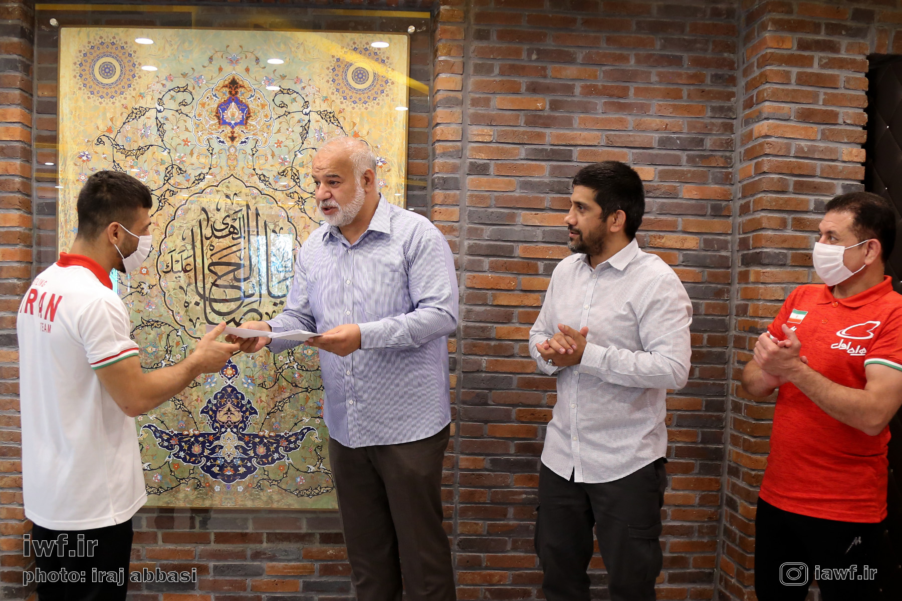 وی ضمن آرزوی توفیق و سلامتی جهت همه ورزشکاران اعزامی خصوصاً کشتی گیران و بیان خاطراتی از شهدای جنگ تحمیلی، پاداشی نیز به ملی پوشان کشورمان اهداء کرد.