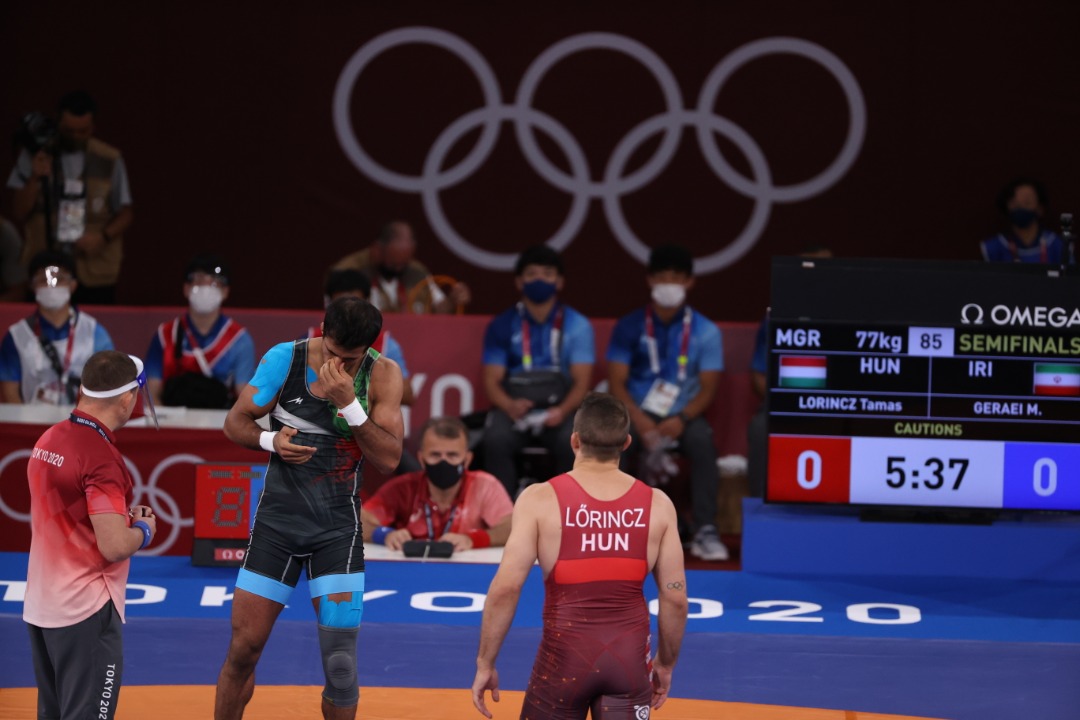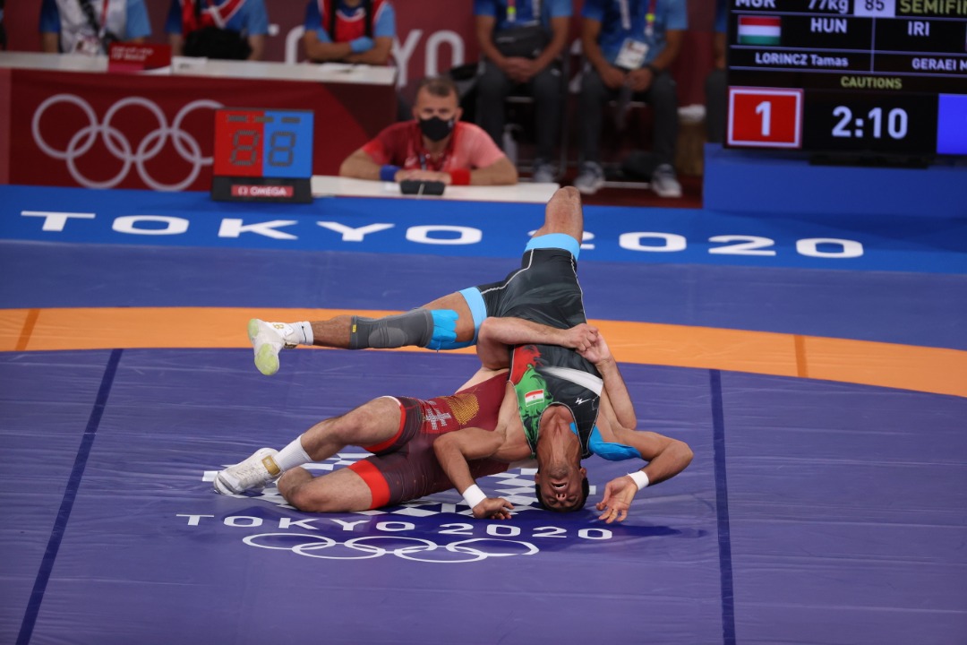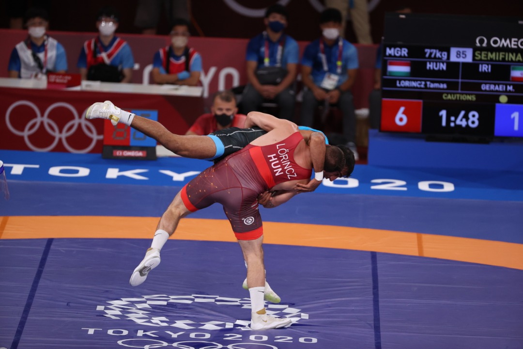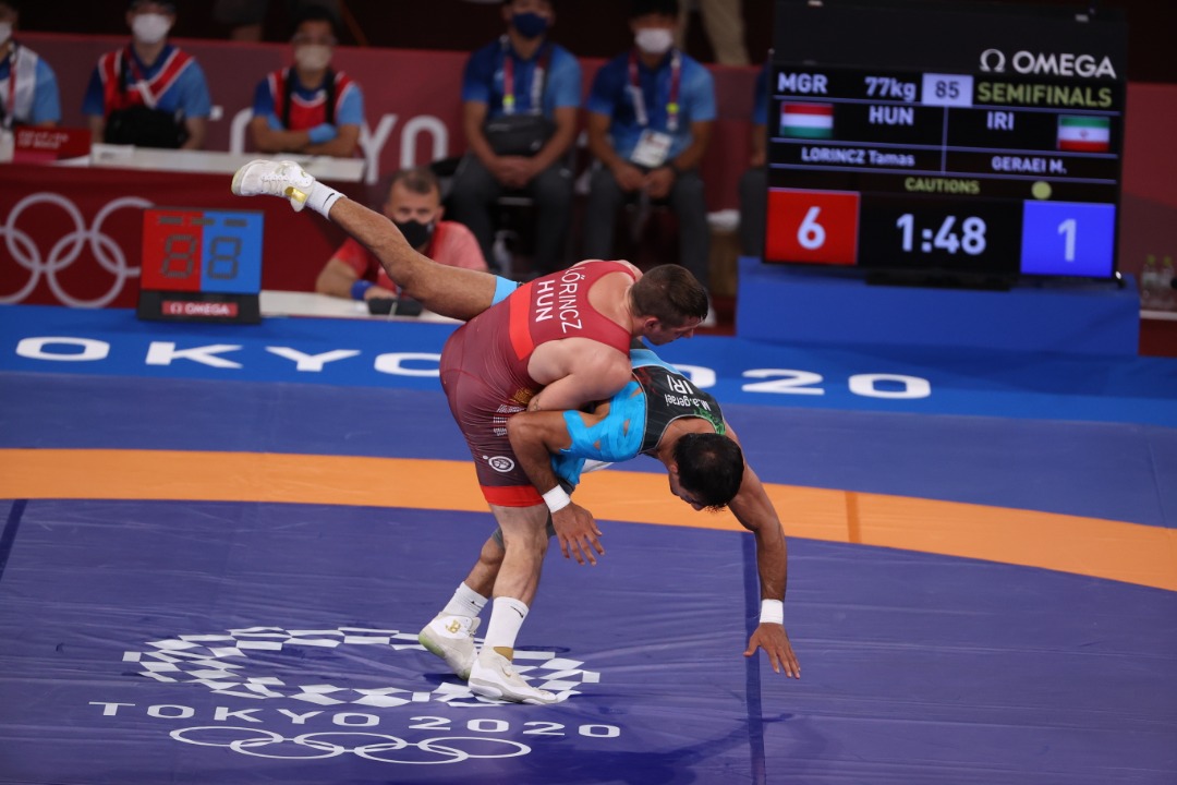 دیدار مرحله نیمه نهایی وزن 77 کیلوگرم بین گرایی و حریف مجارستانی