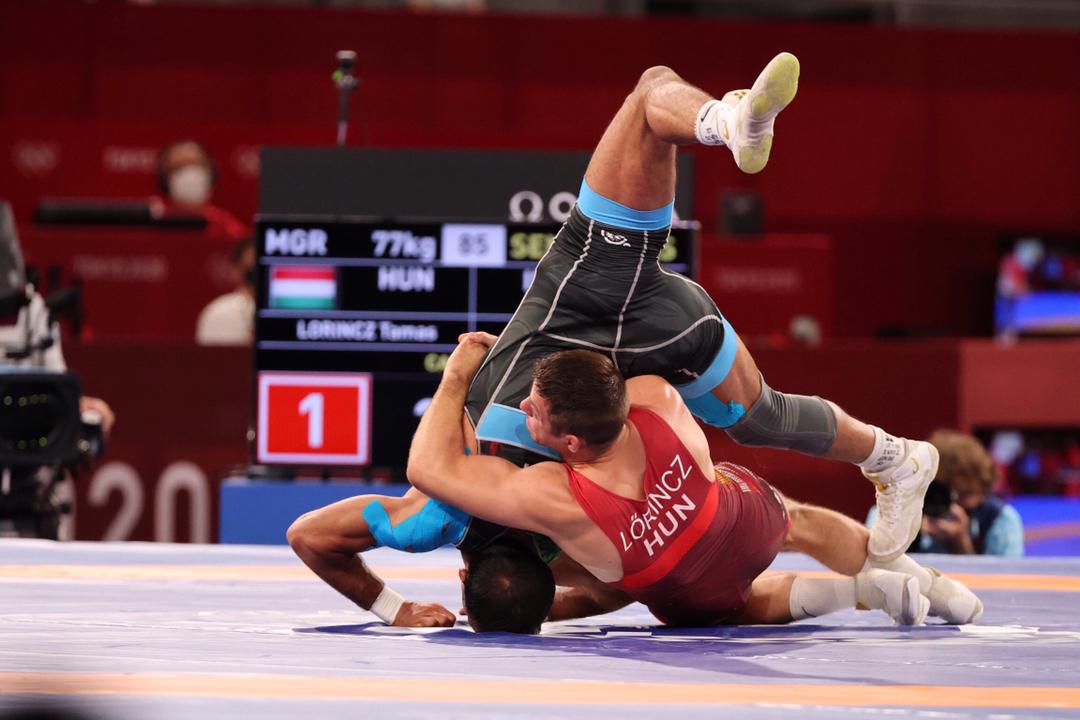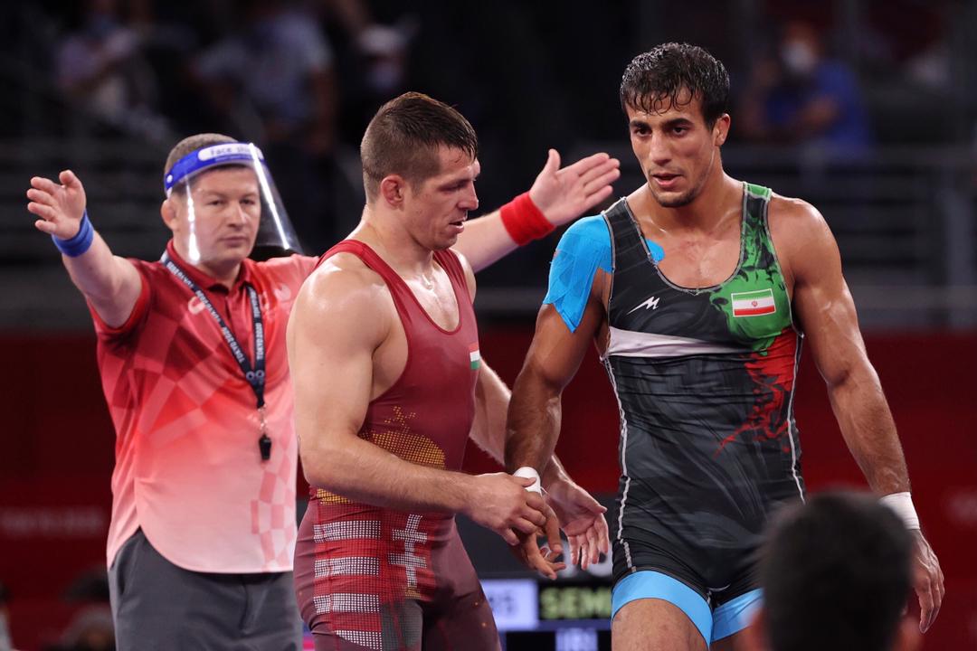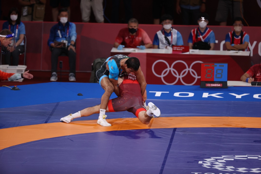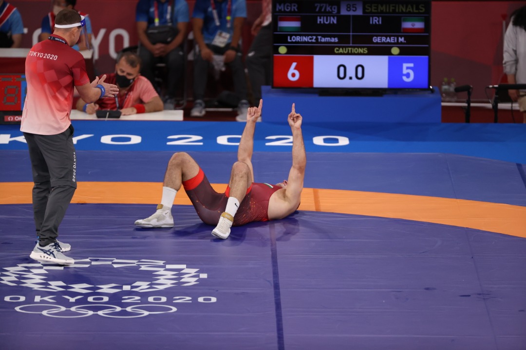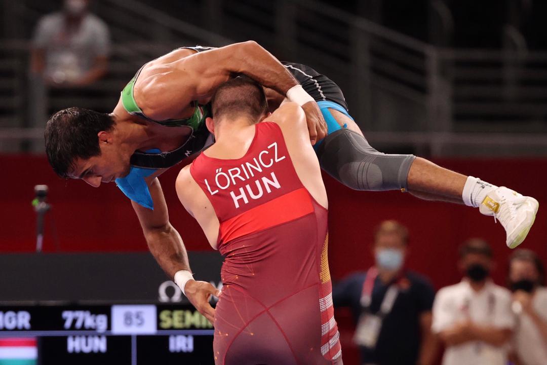 دیدار مرحله نیمه نهایی وزن 77 کیلوگرم بین گرایی و حریف مجارستانی