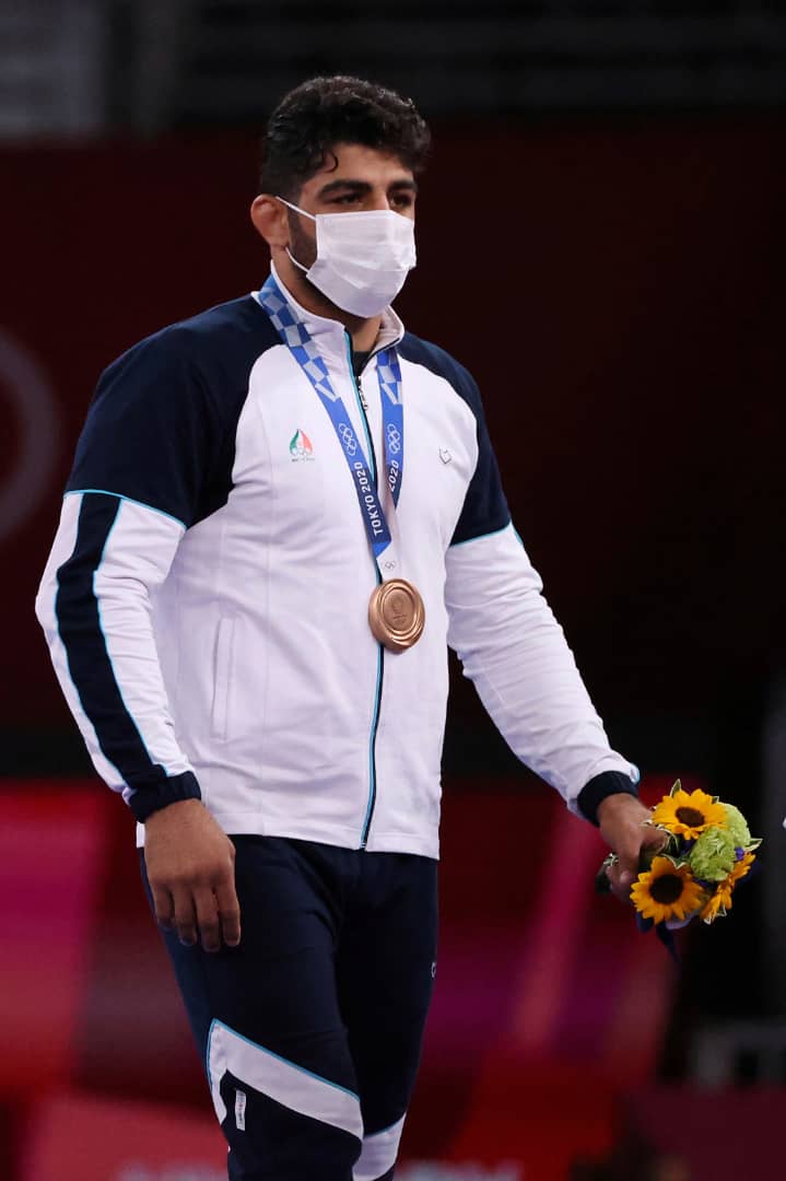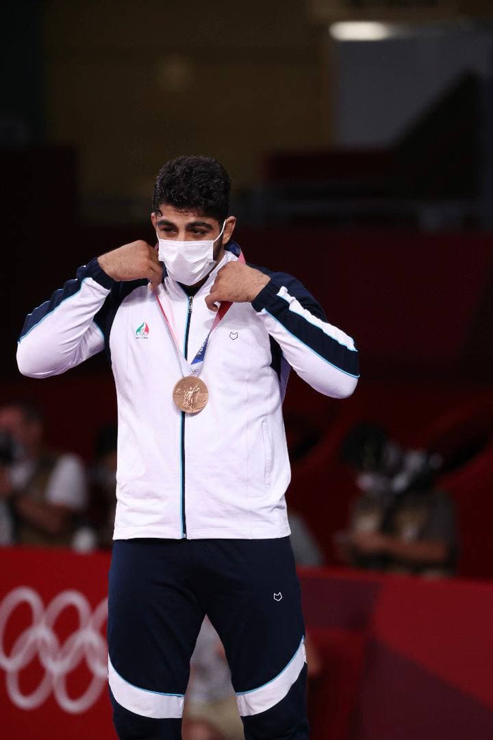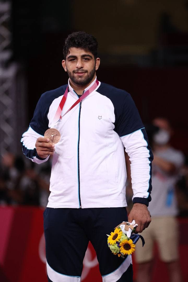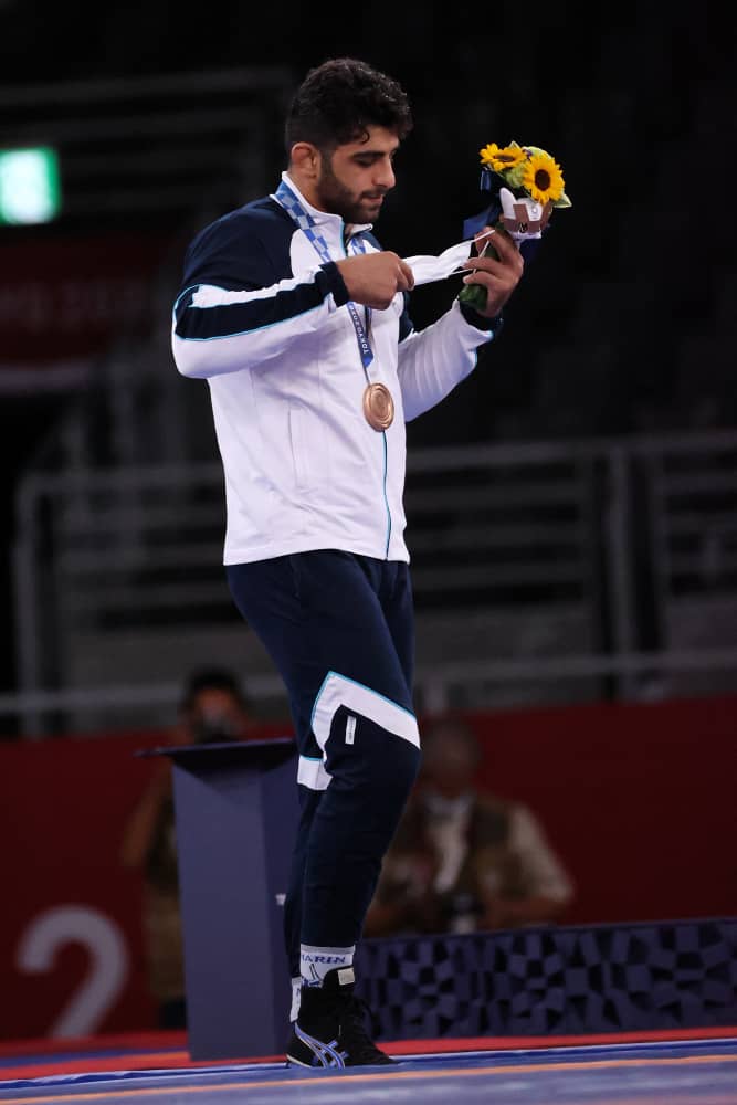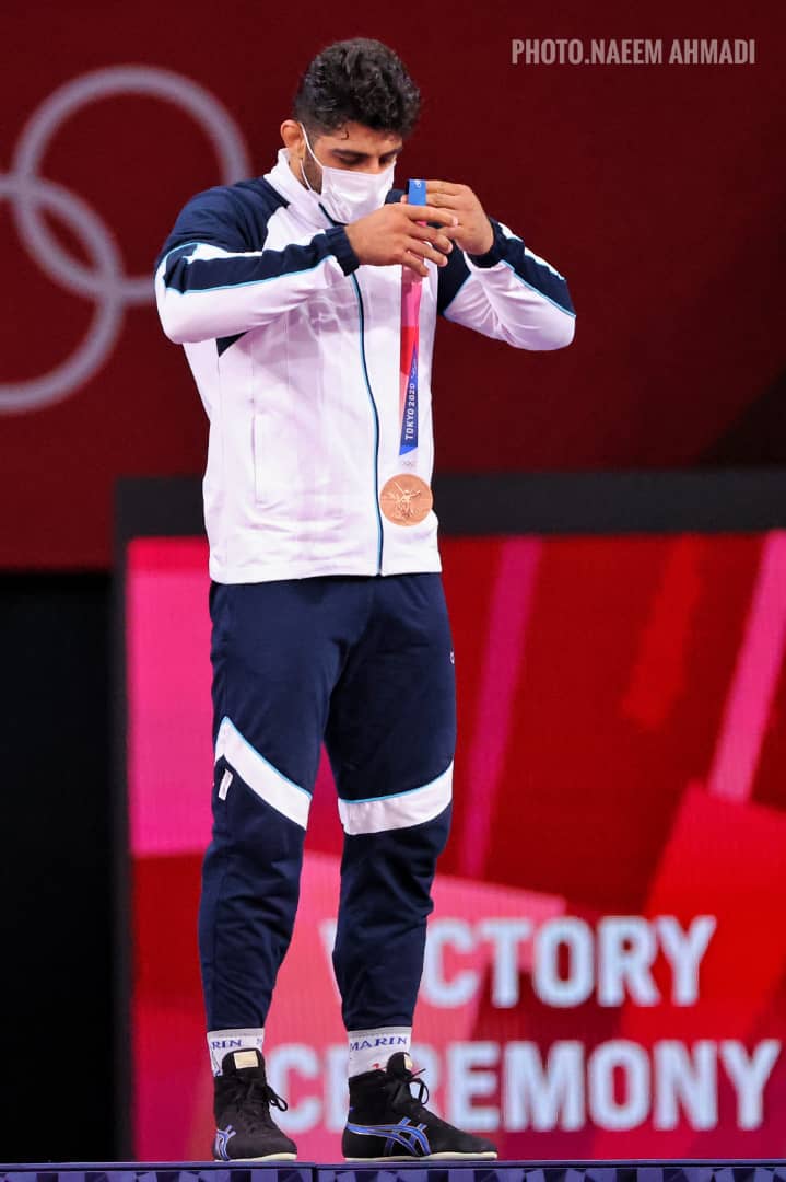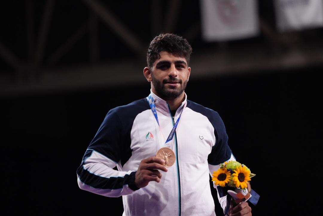 اهدای مدال برنز وزن 97 کیلوگرم کشتی فرنگی به محمدهادی ساروی