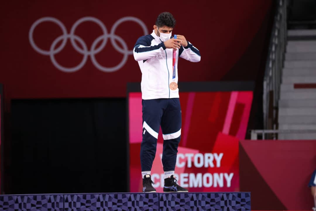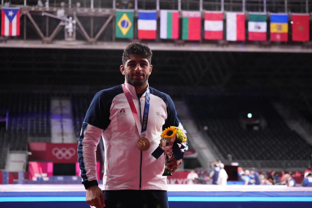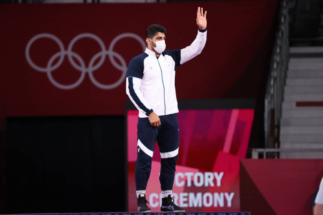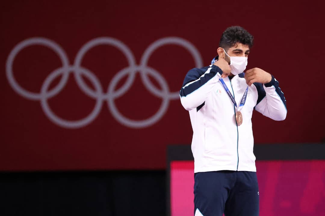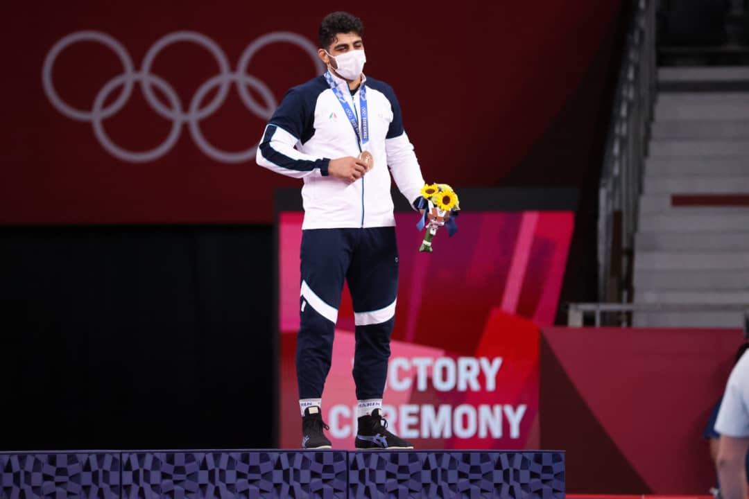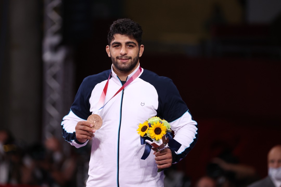 اهدای مدال برنز وزن 97 کیلوگرم کشتی فرنگی به محمدهادی ساروی