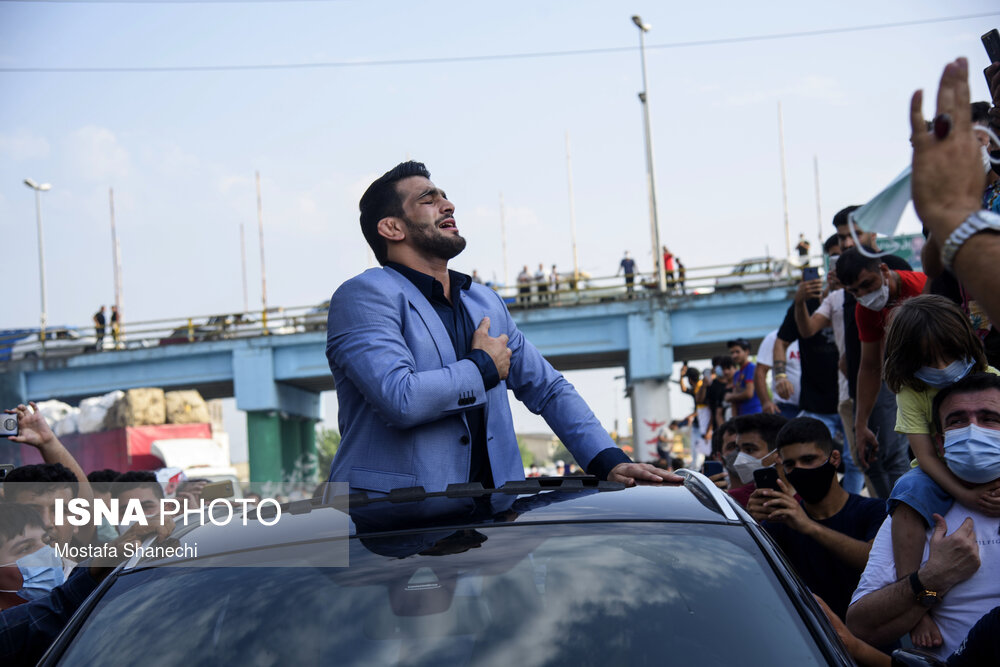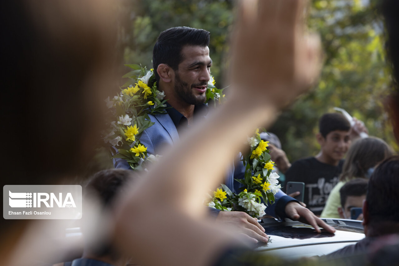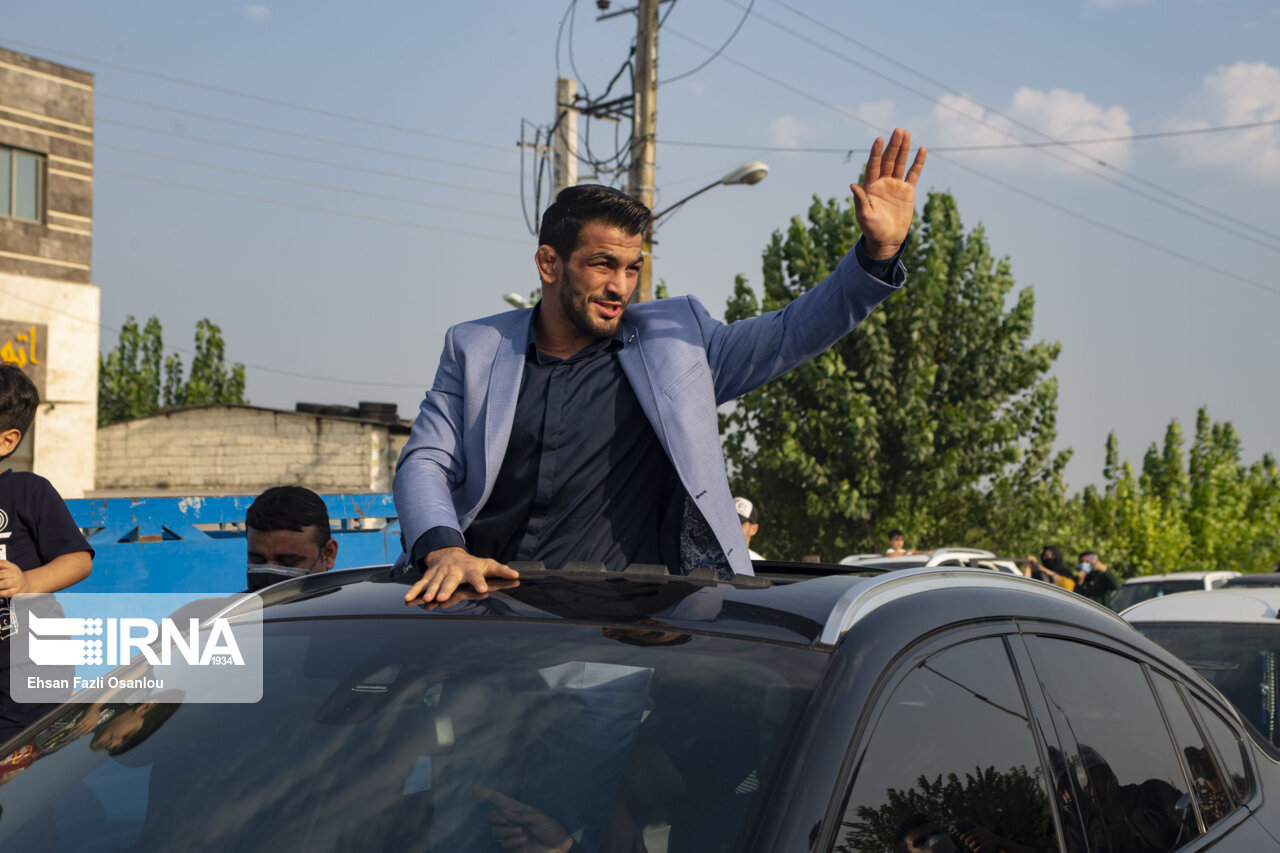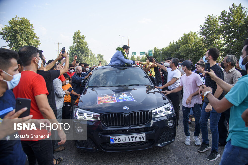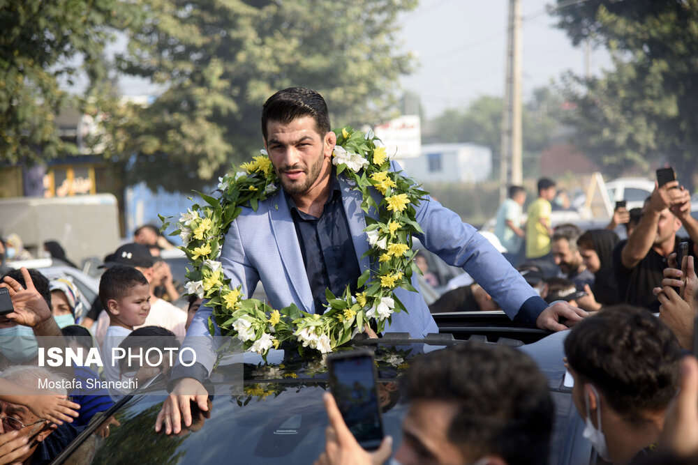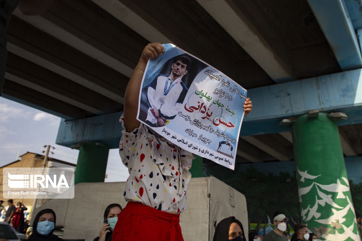 مراسم استقبال پرشور مردم جویبار از حسن یزدانی دارنده مدال نقره المپیک توکیو (گزارش تصویری)