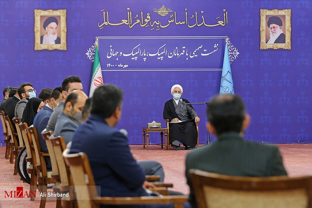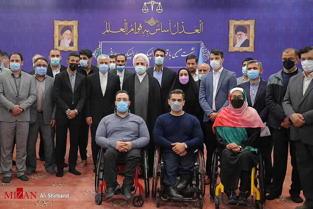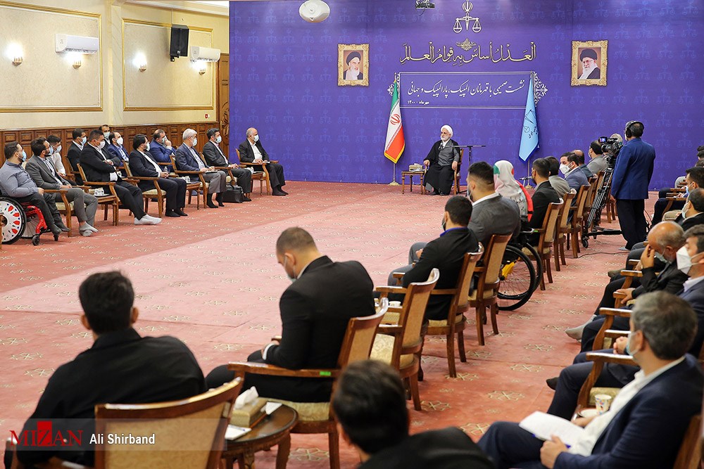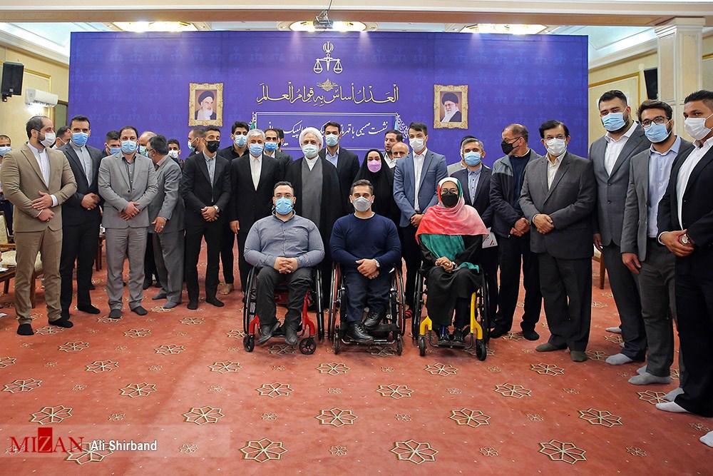 رئیس قوه قضاییه در بخش دیگری از سخنانش بر لزوم اجرای همه جانبه قانون جامع حمایت از معلولان که مورد مطالبه ورزشکاران پارالمپیکی بود تأکید کرد و گفت که سازمان بازرسی کل کشور بر نحوه اجرای این قانون نظارت میکند و با هر گونه قصور و تخلف از قانون برخورد خواهد شد.