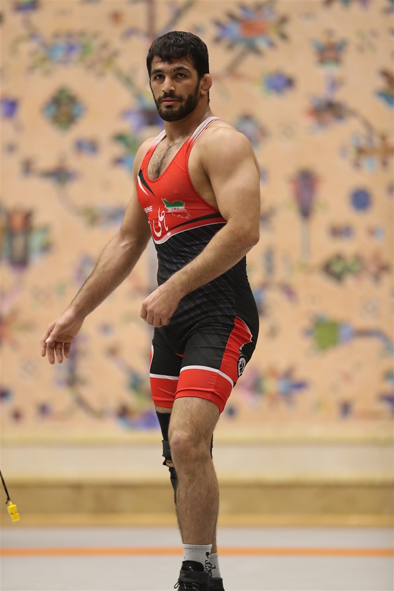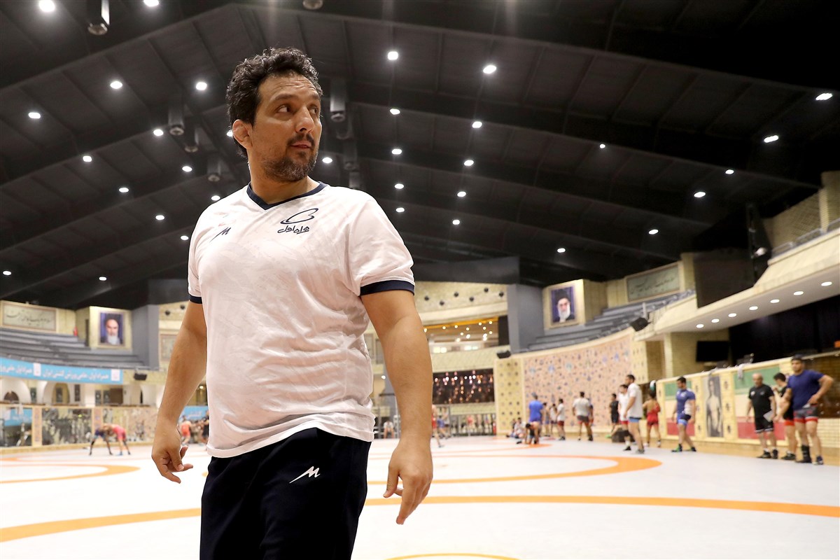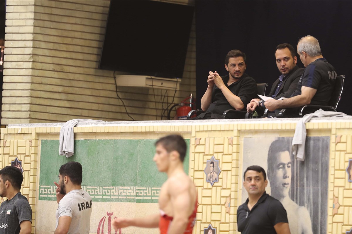 حمید سوریان نایب رئیس فدراسیون کشتی و دارنده هفت مدال طلای جهان و المپیک نظارهگر تمرینات کشتیگیران بود
