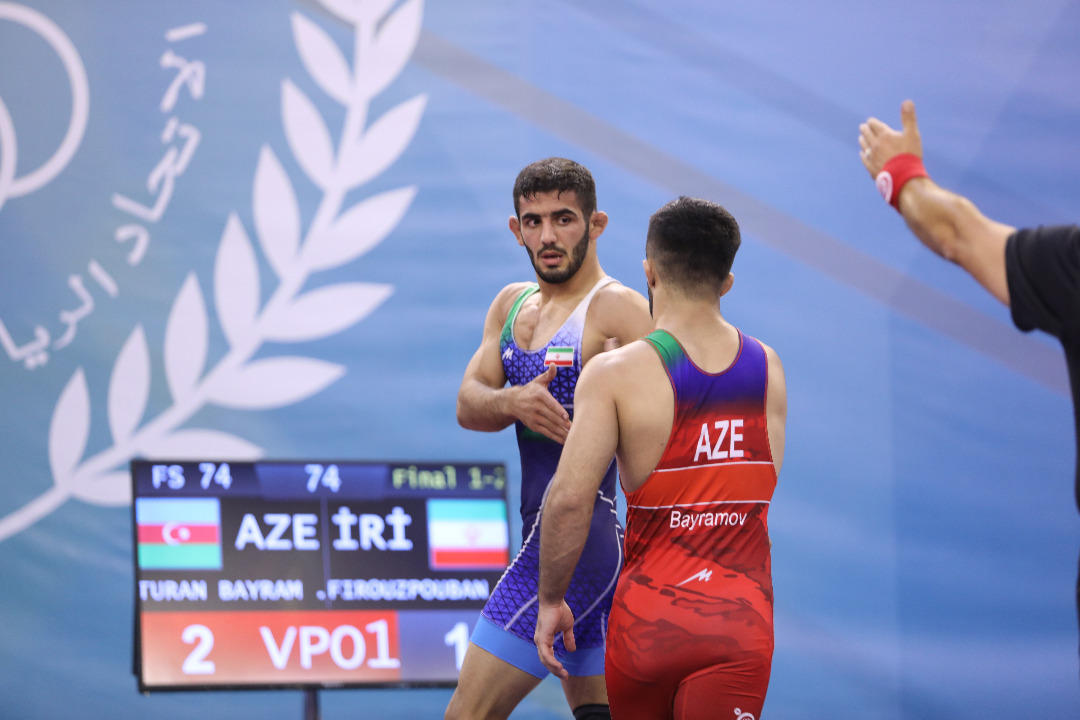 به گزارش روابط عمومی فدراسیون کشتی، در وزن 74 کیلوگرم محمدصادق فیروزپور در دور نخست با نتیجه 9 بر 6 فضلی اریلماز از ترکیه را مغلوب کرد. وی در دور بعد با نتیجه 13 بر 4 ارزو ایساکوف از اردن را شکست داد و راهی مرحله نیمه نهایی شد. وی در این مرحله مقابل نورکجا کایپانوف دارنده مدال نقره جهان و قهرمان آسیا از قزاقستان با نتیجه 3 بر 2 به پیروزی رسید و راهی دیدار فینال شد. فیروزپور در دیدار پایانی با نتیجه 2 بر 1 مغلوب توران بایراموف از آذربایجان شد و به مدال نقره رسید.