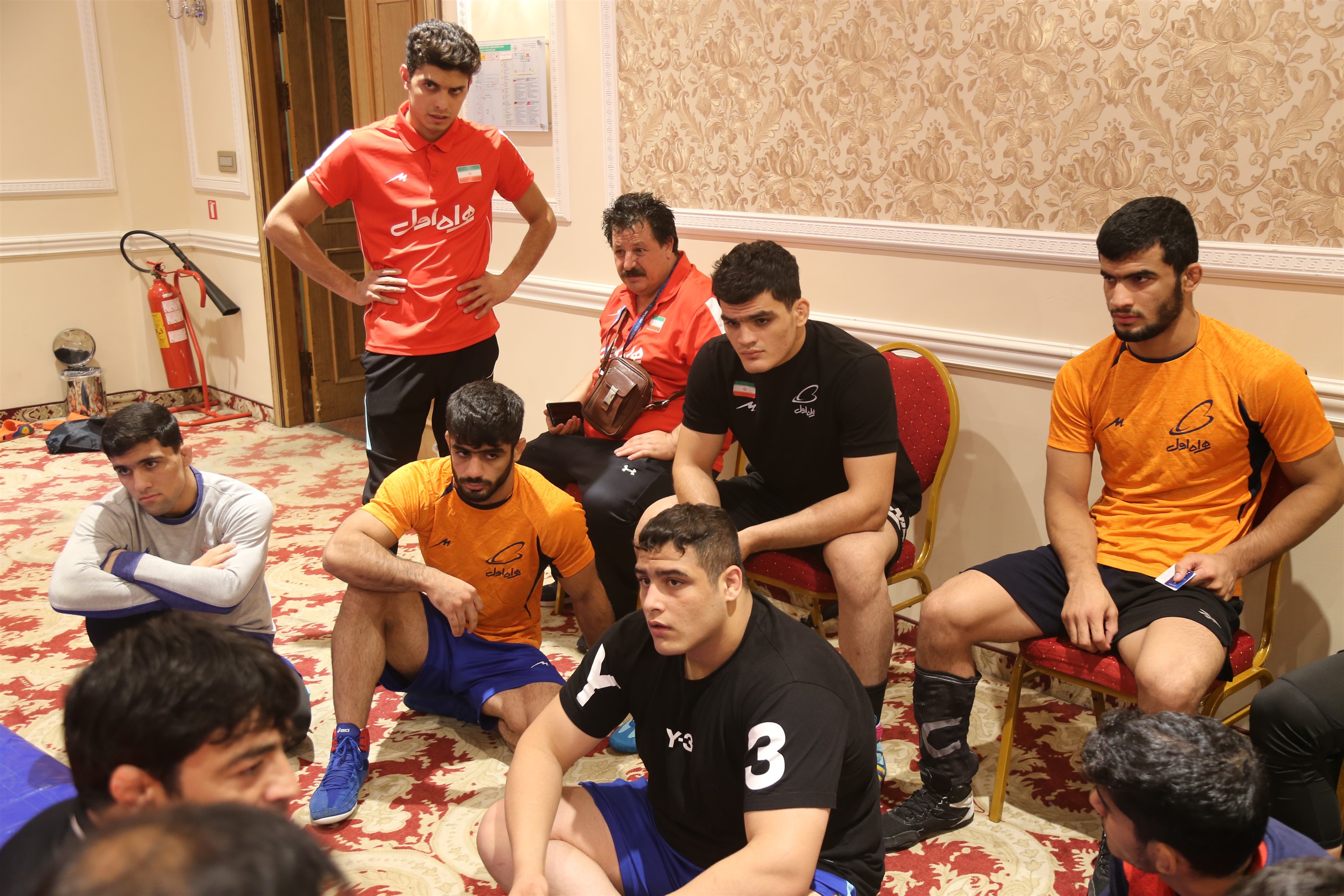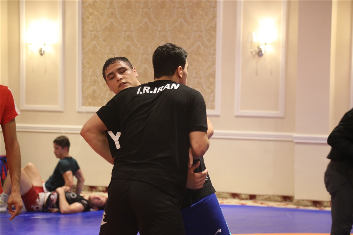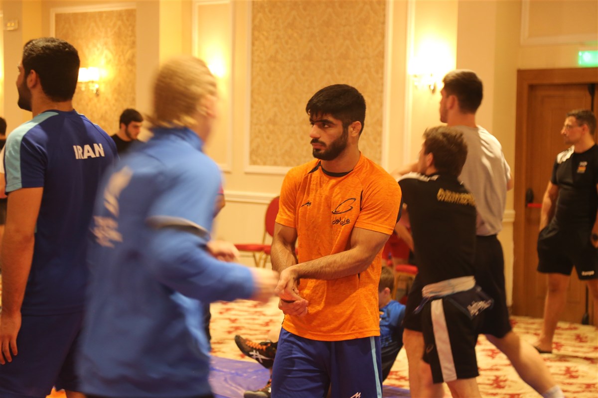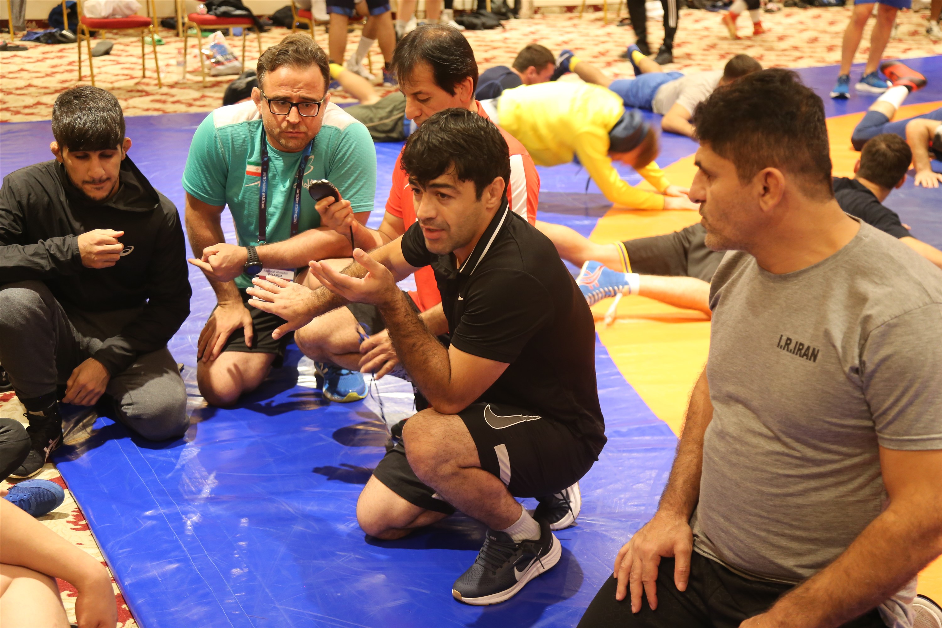 تمرین تیم کشتی ایران در محل برگزاری مسابقات