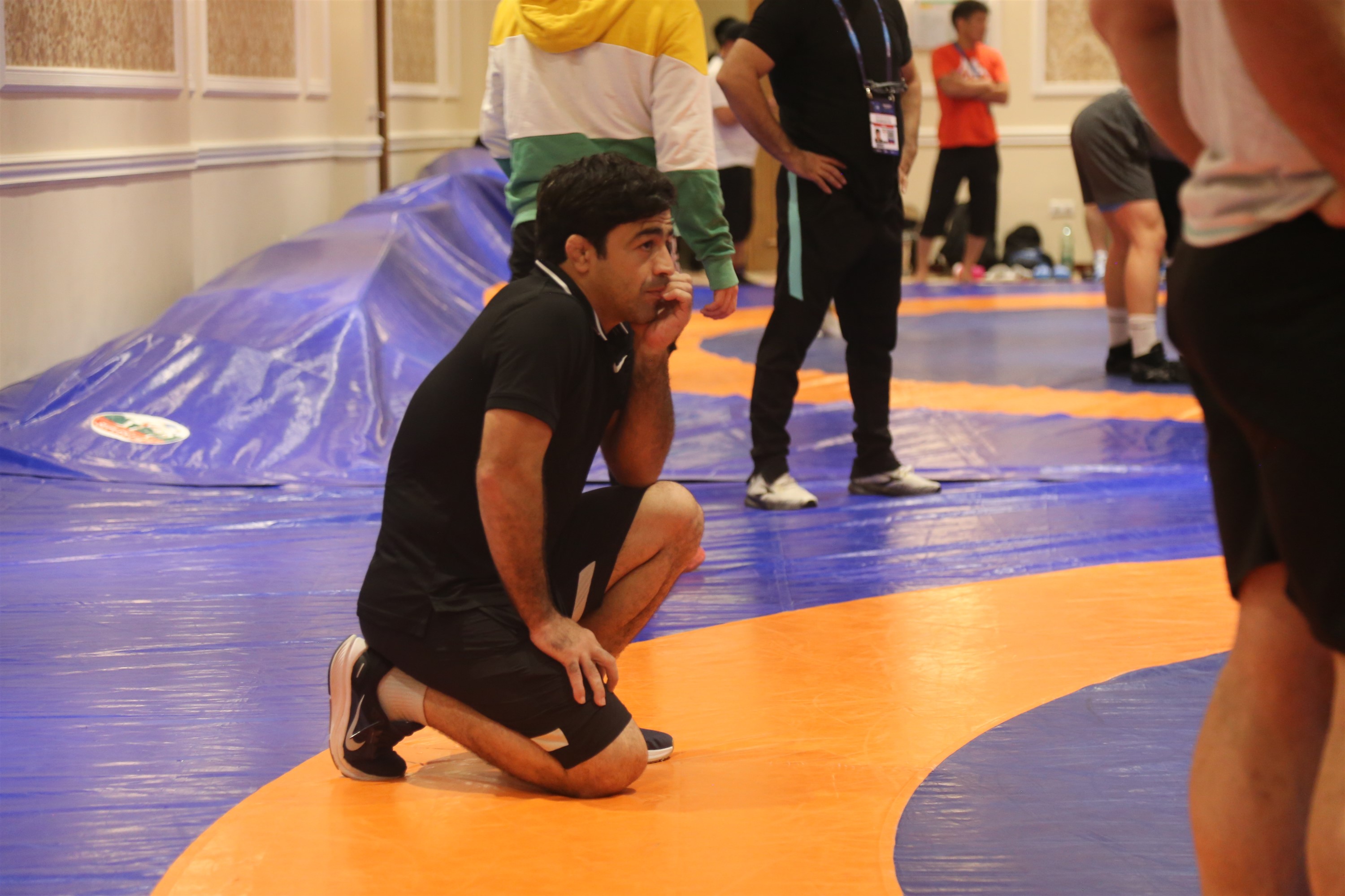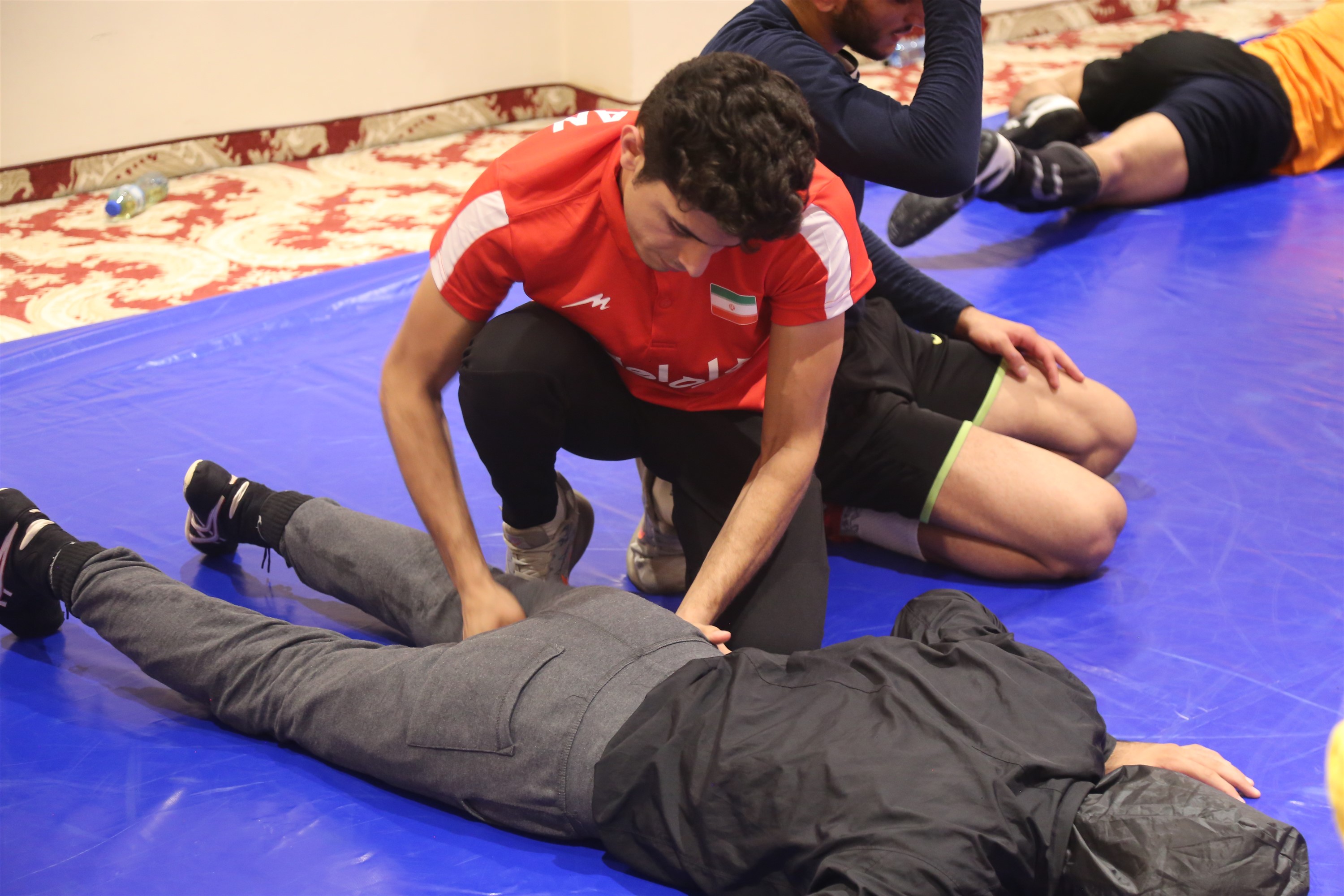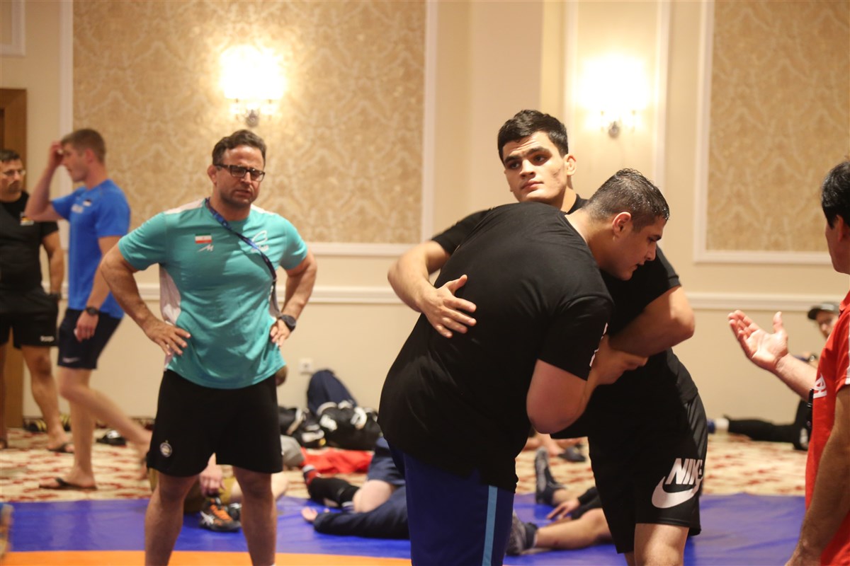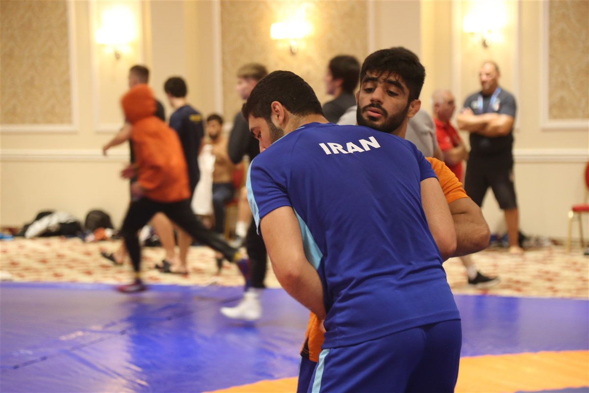تمرین تیم کشتی ایران در محل برگزاری مسابقات