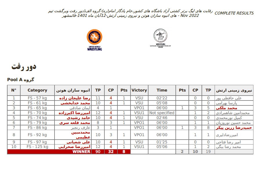 92 کیلوگرم: محمدمبین عظیمی 10 – امیررضا دلیری 1