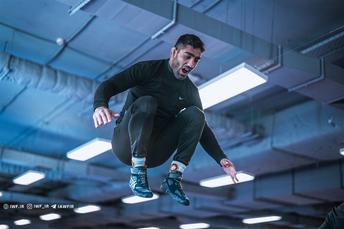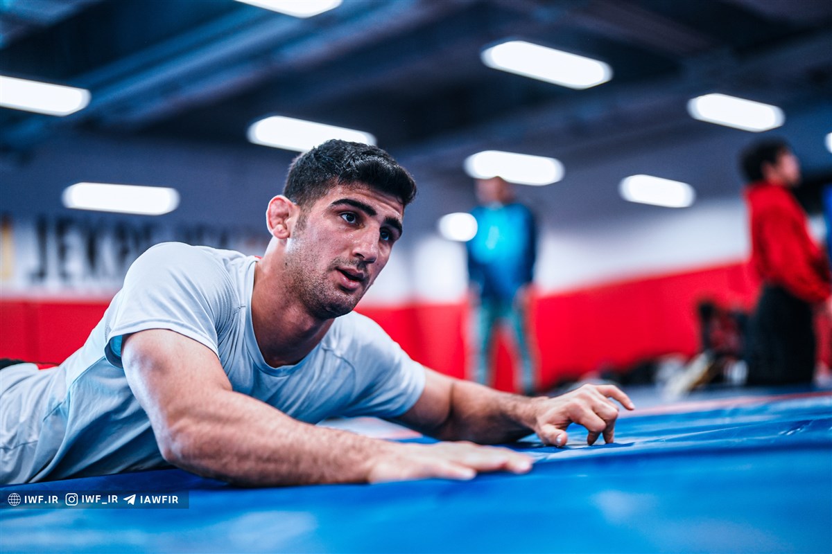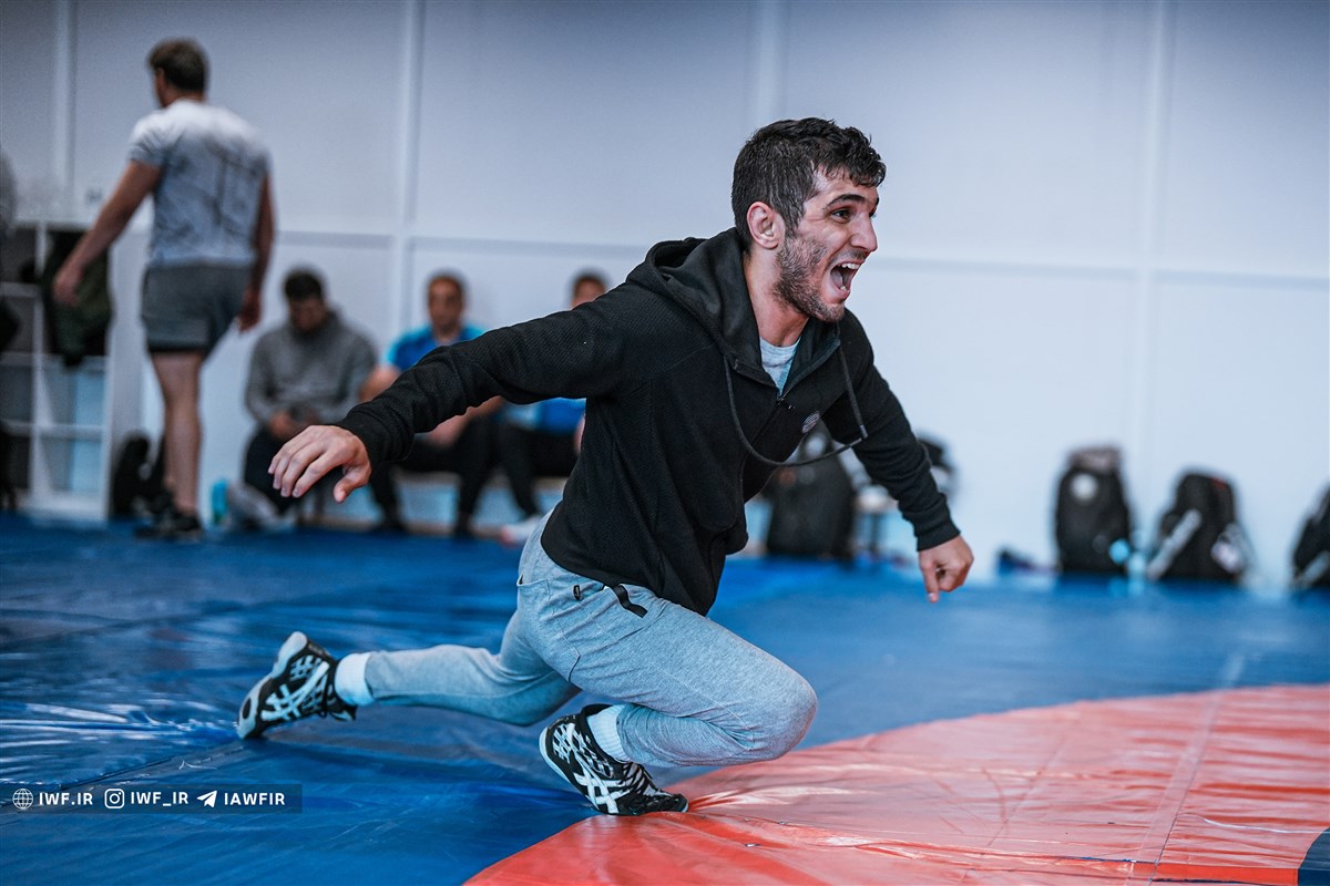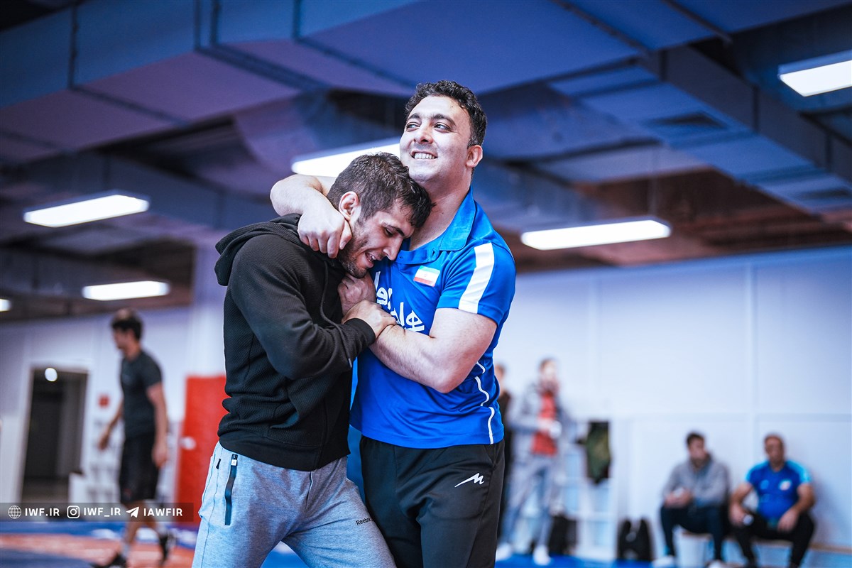 سومین تمرین تیم ملی کشتی فرنگی در محل برگزاری مسابقات