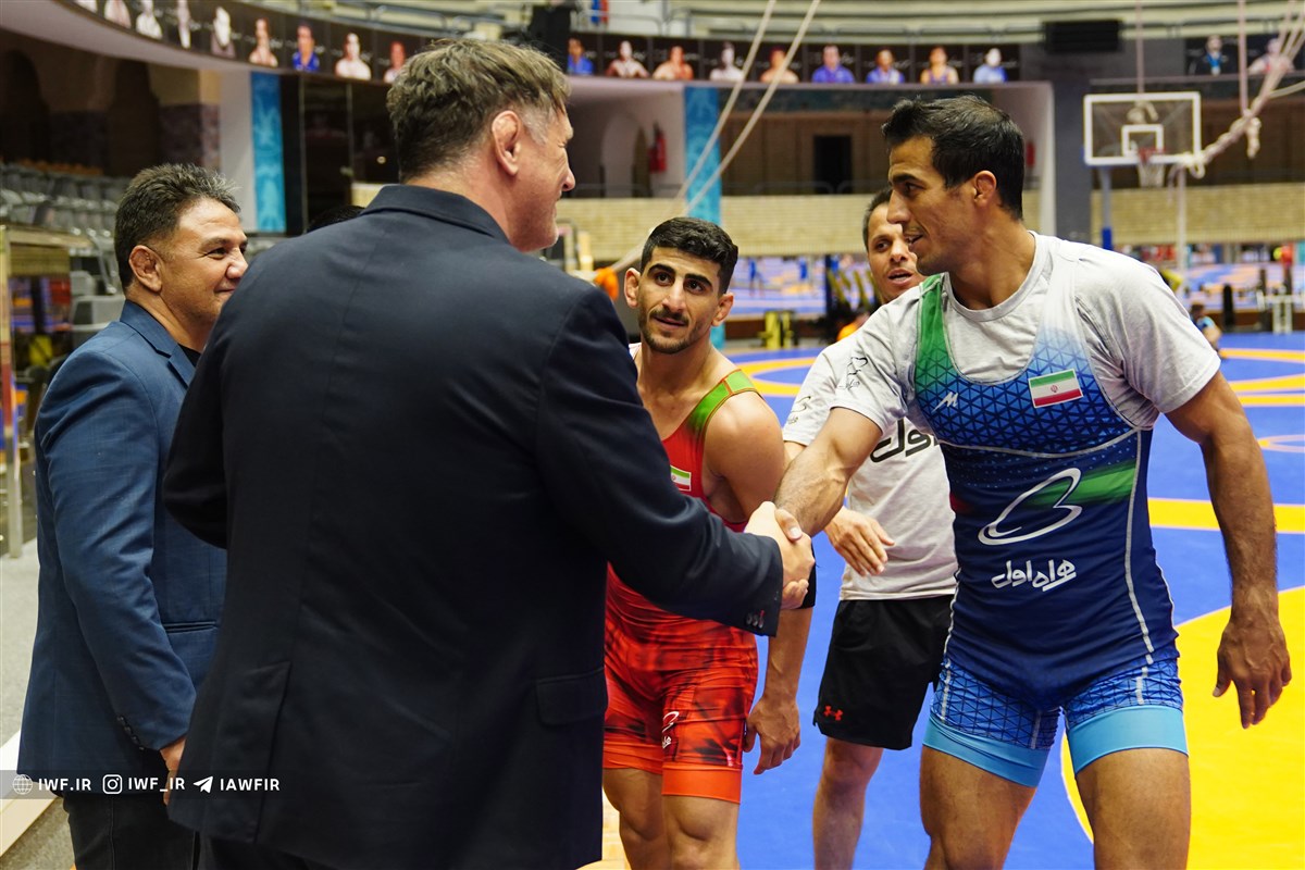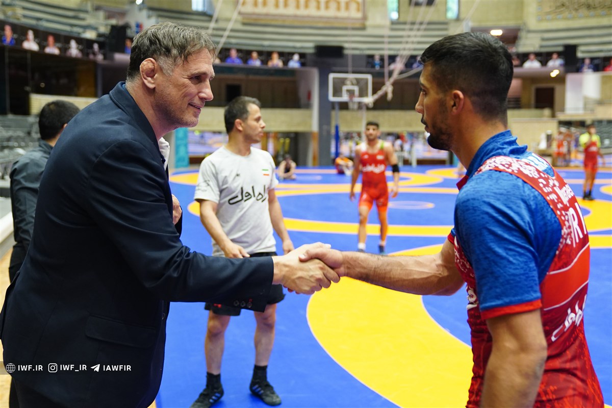 باچا همچنین به نظاره تمرینات تیم کشتی فرنگی بزرگسالان نشست.