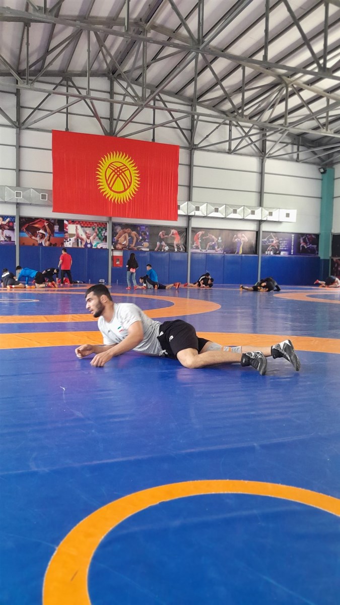 اعضای تیم ملی کشتی فرنگی که به منظور حضور در رقابت های بین المللی رنکینگ اتحادیه جهانی در شهر بیشکک قرقیزستان حضور دارند، صبح امروز نخستین تمرین خود را در محل برگزاری این مسابقات برگزار کردند.