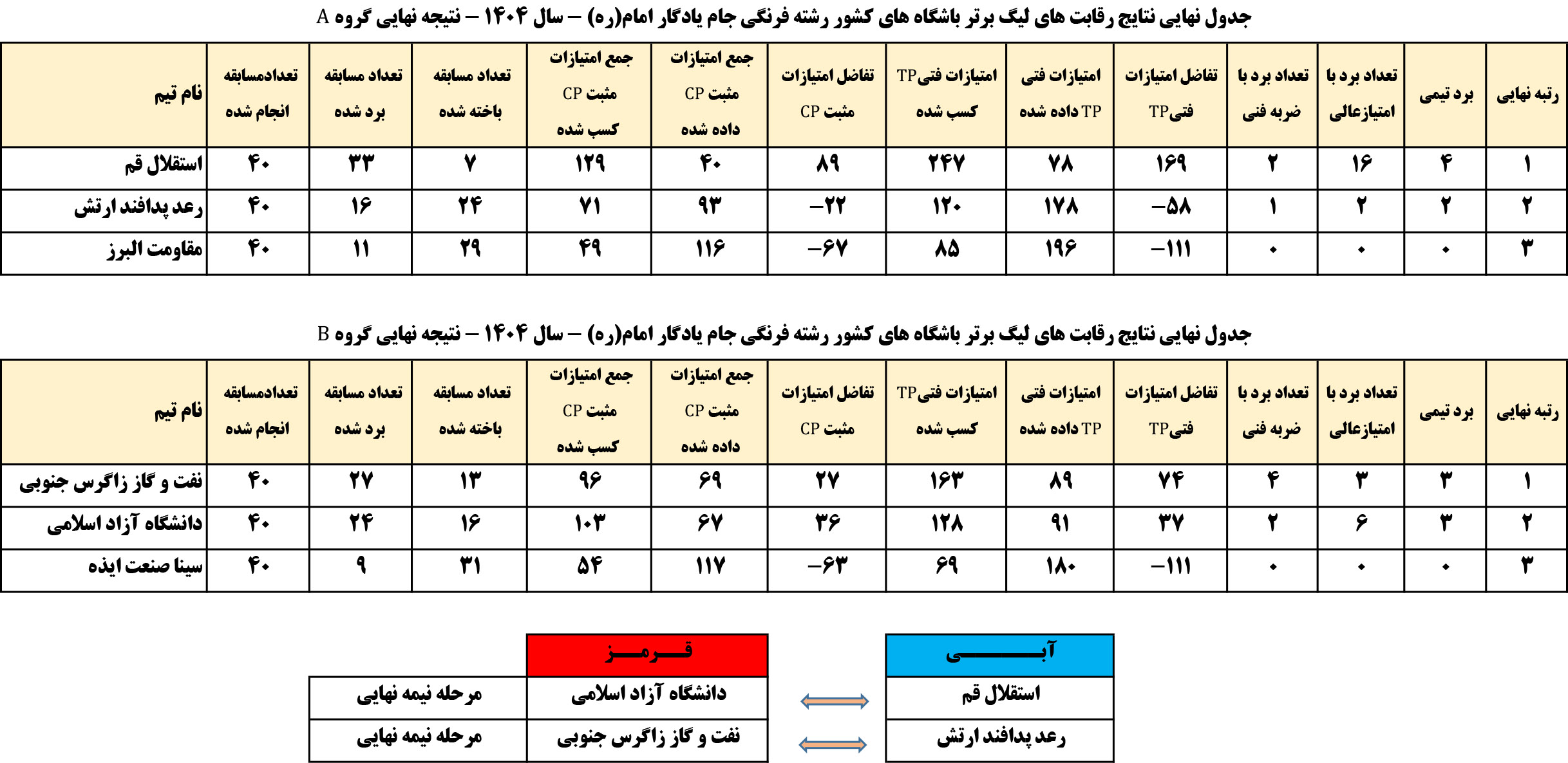 رده بندی نهایی تیم ها در دورهای رفت و برگشت اعلام شد
