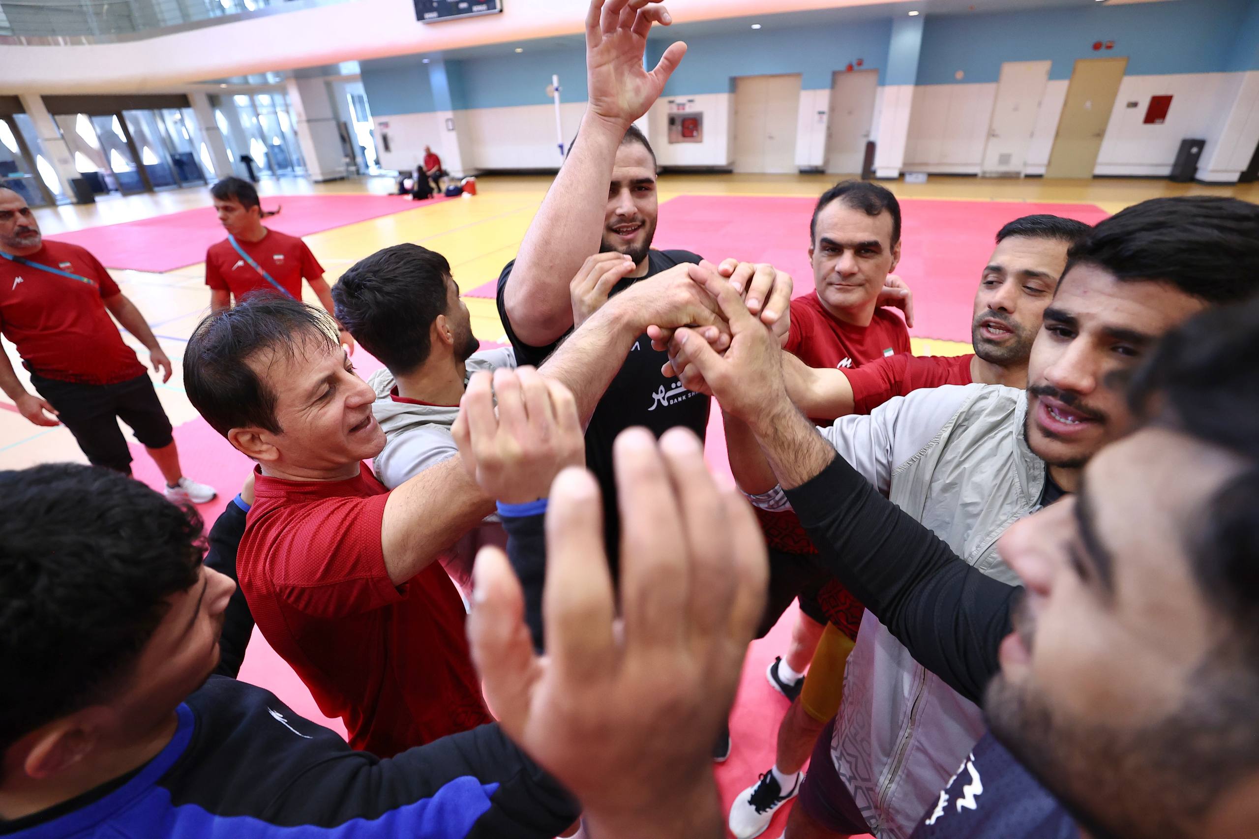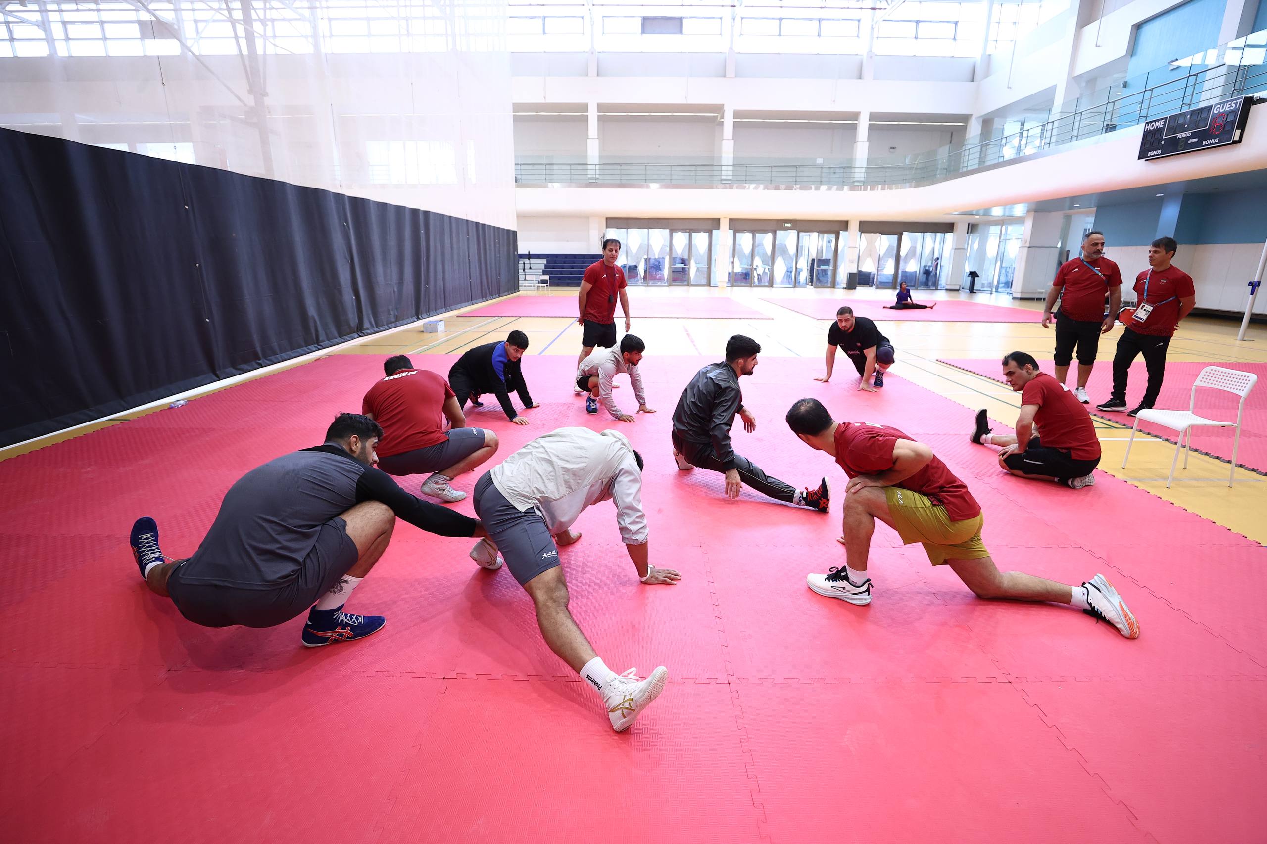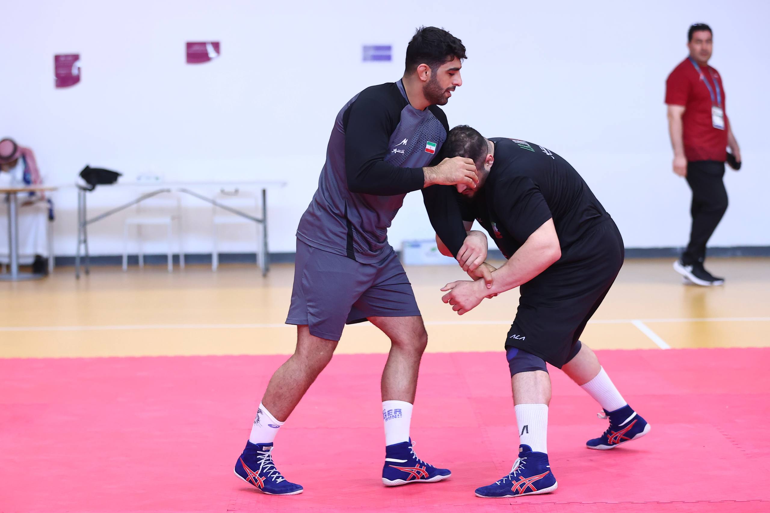 تمرین تیم ملی کشتی فرنگی در شهر ریاض محل برگزاری بازی های همبستگی کشورهای اسلامی (گزارش تصویری)