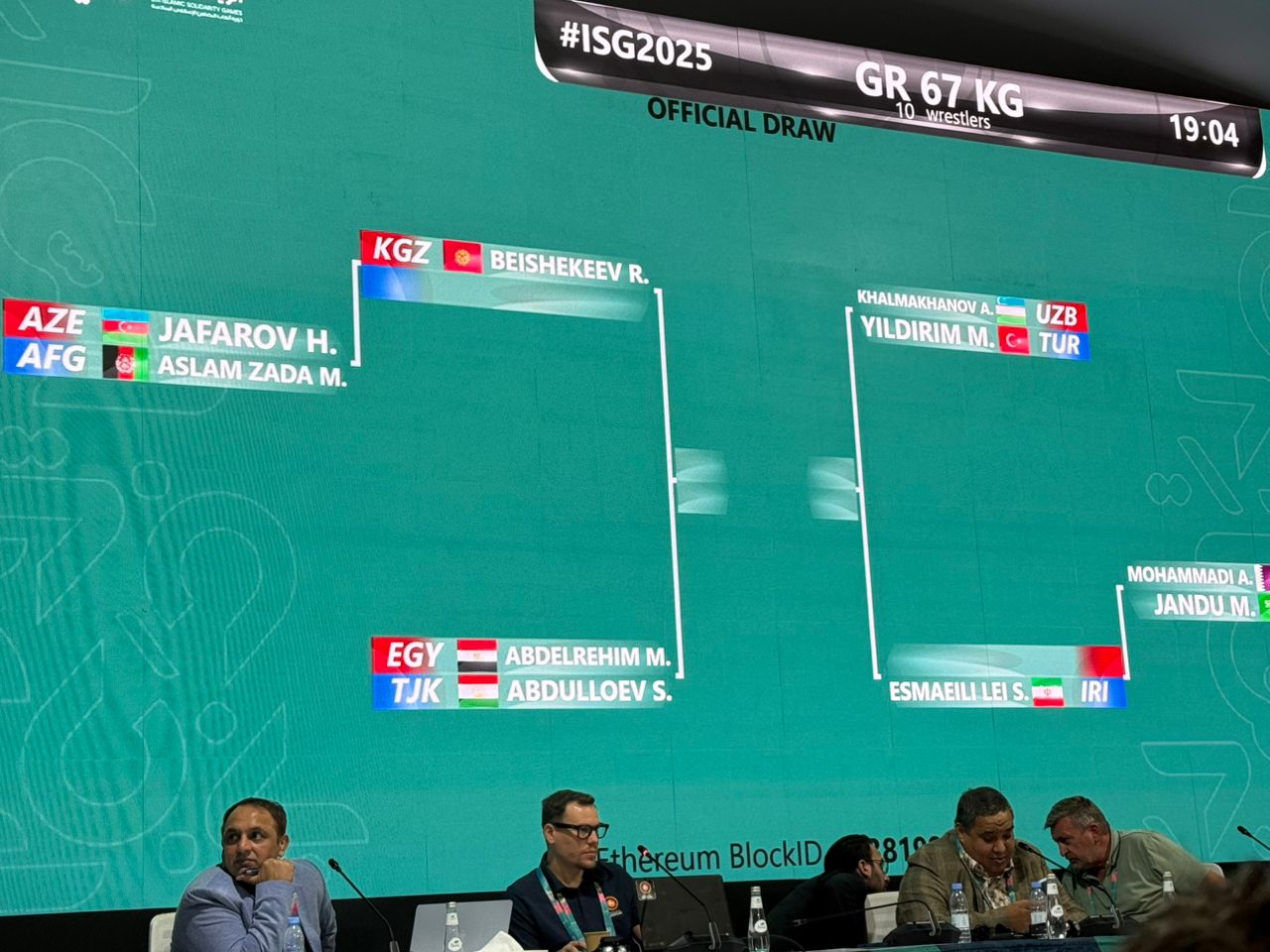 در وزن 67 کیلوگرم که 10 نفر حضور دارند، سعید اسماعیلی پس از استراحت در دور اول در دور دوم به مصاف برنده مبارزه میان عارف محمدی از قطر و جاندو از عربستان می رود.