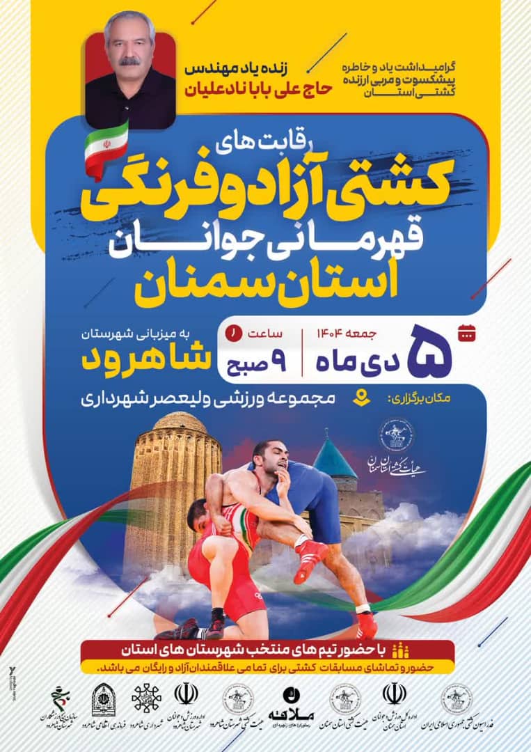 رقابت های کشتی آزاد و فرنگی قهرمانی جوانان استان سمنان گرامیداشت پیشکسوت و مربی کشتی استان زنده یاد مهندس حاج علی بابا نادعلیان برگزار شد.