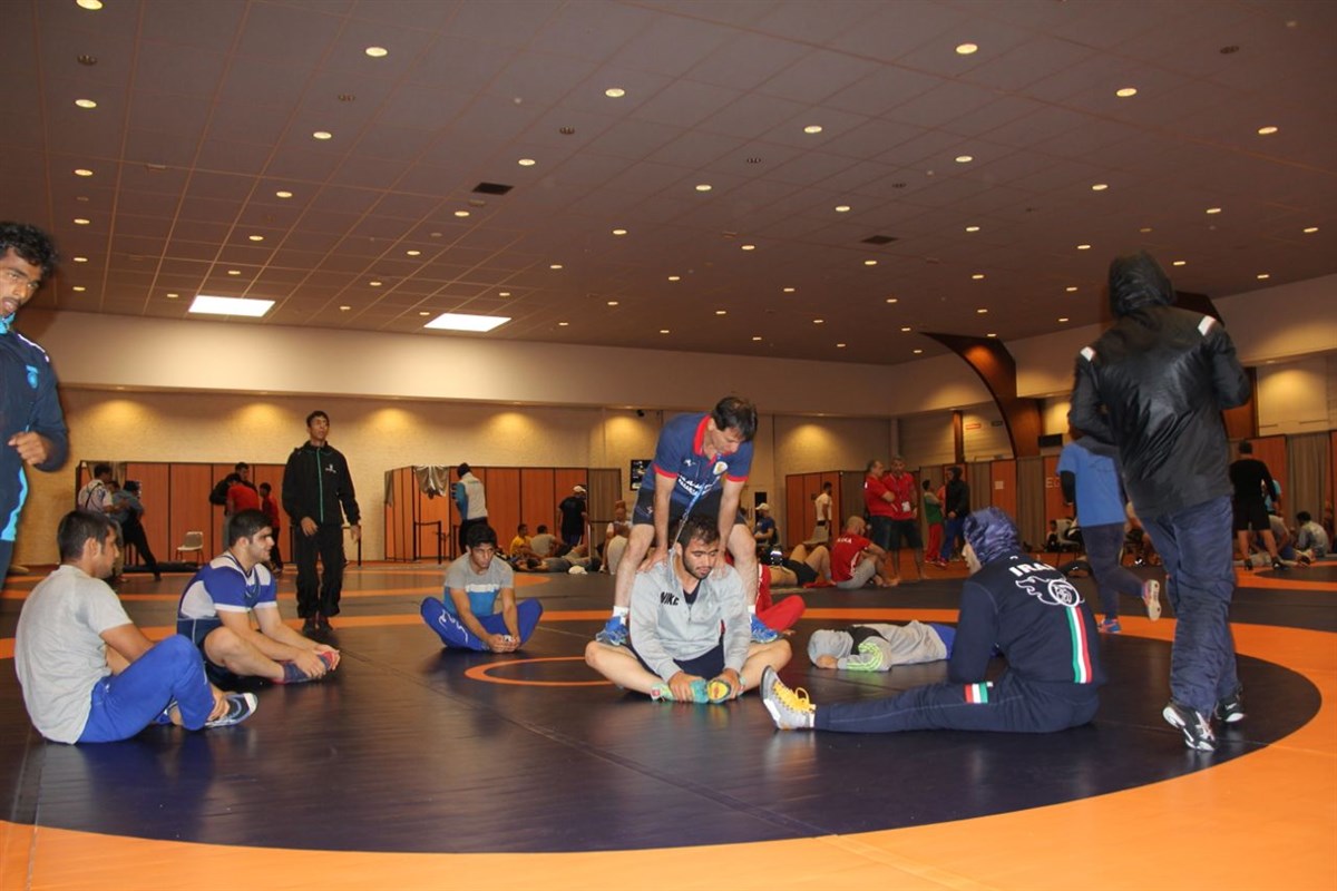 اولین تمرین تیم ملی کشتی فرنگی جوانان ایران در محل برگزاری مسابقات کشتی جوانان جهان در ماکون فرانسه برگزار شد.
